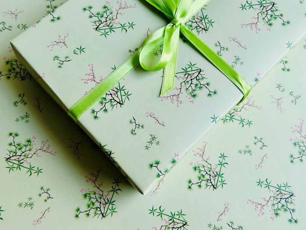 Balící papír s borovicí, bambusem a slivoní nebo-li Třemi přáteli zimy, 475 x 680 mm