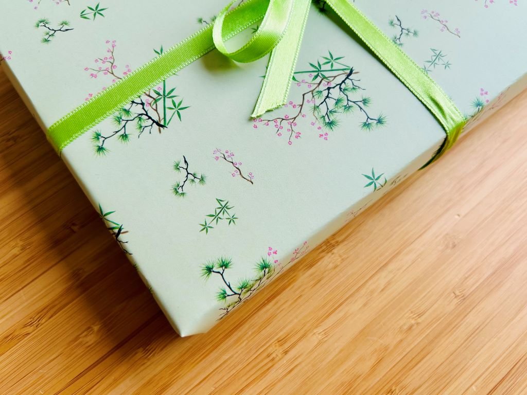 Balící papír se "Třemi přáteli zimy" s bambusem, slivoní a borovicí