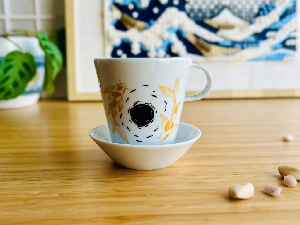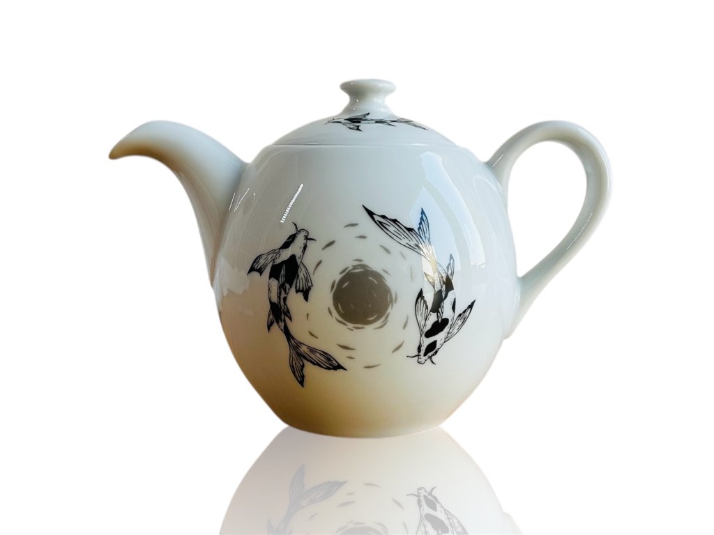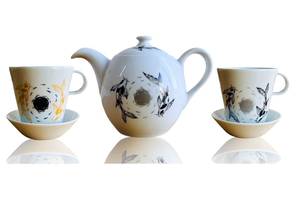 Sada konvice a 2 hrnků s podšálky s koi kapříky a měsícem