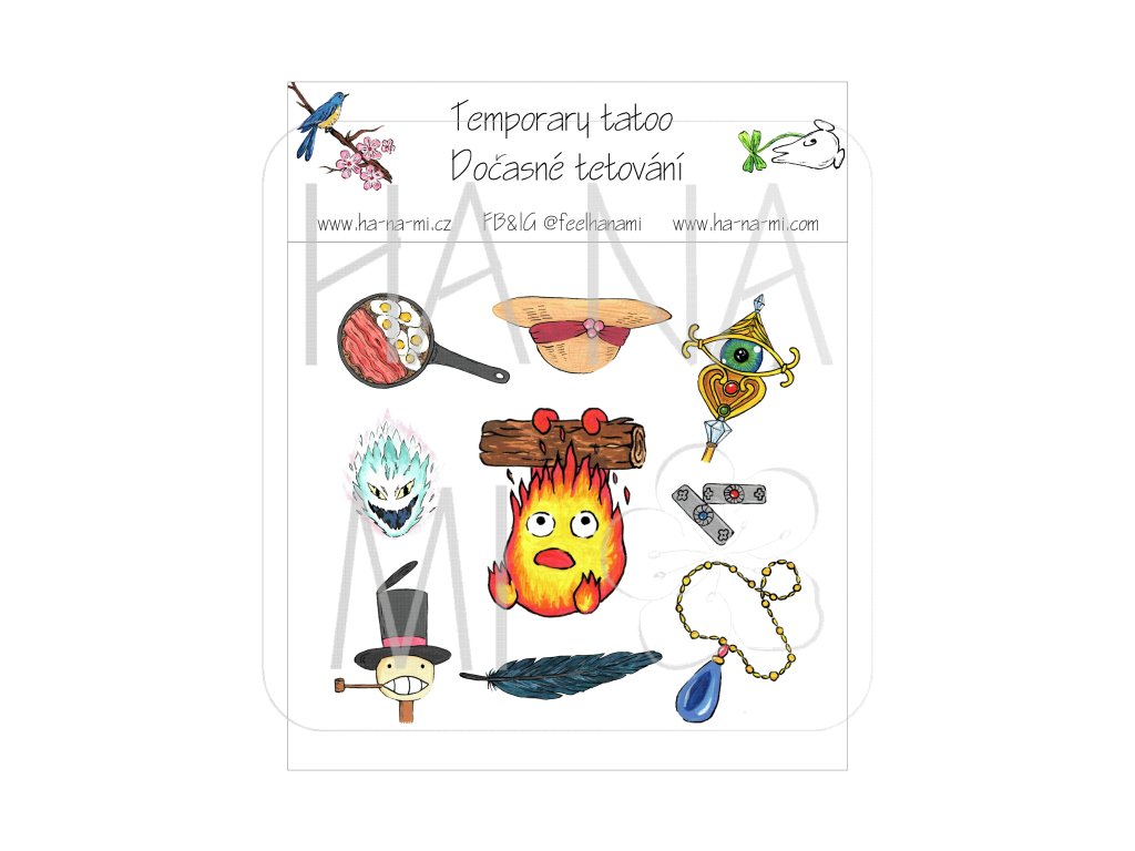 - tetovačky jako reprodukce mých akrylových maleb inspirovaných klasickým animovaným filmem Zámek v oblacích