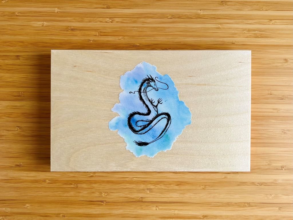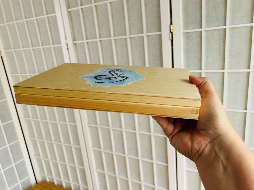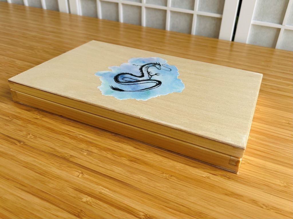 - praktická, a zároveň elegantní, dřevěná krabička ozdobená reprodukcí mých akrylových maleb inspirovaných japonským vodním drakem.