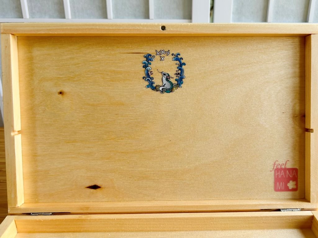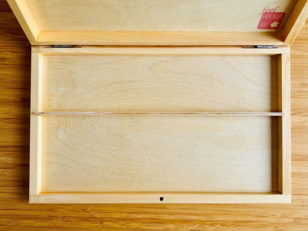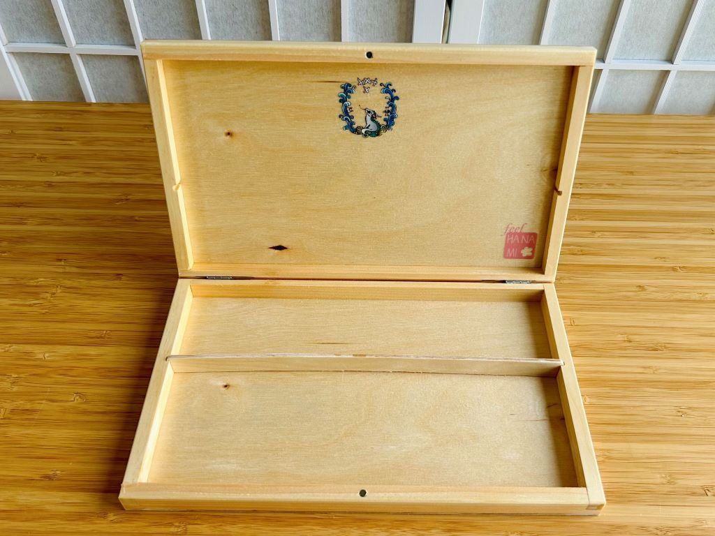 - dřevěnou krabičku jsem nechala vyrobit na míru tak, aby se do ní pohodlně vešly vaše jídelní hůlky i s odkladači na hůlky (hashioki)
