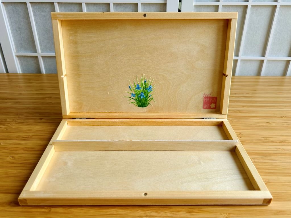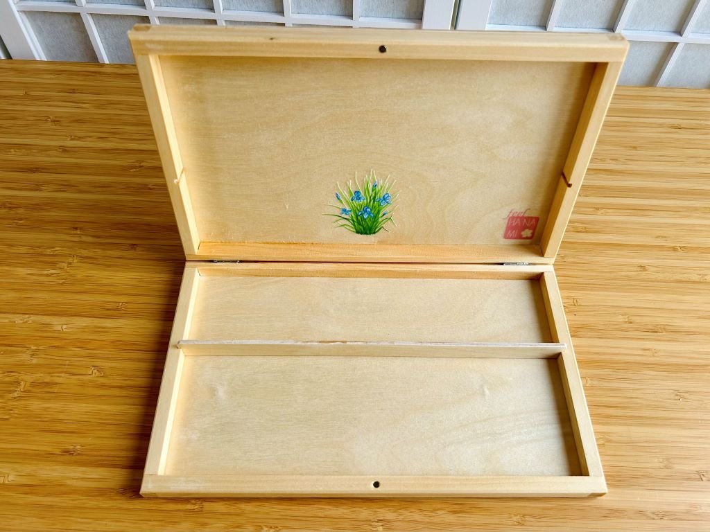 - dřevěnou krabičku jsem nechala vyrobit na míru tak, aby se do ní pohodlně vešly vaše jídelní hůlky i s odkladači na hůlky (hashioki)