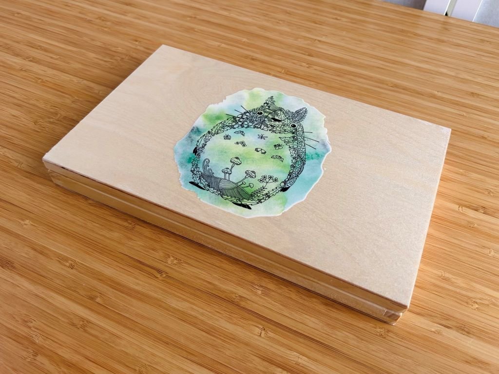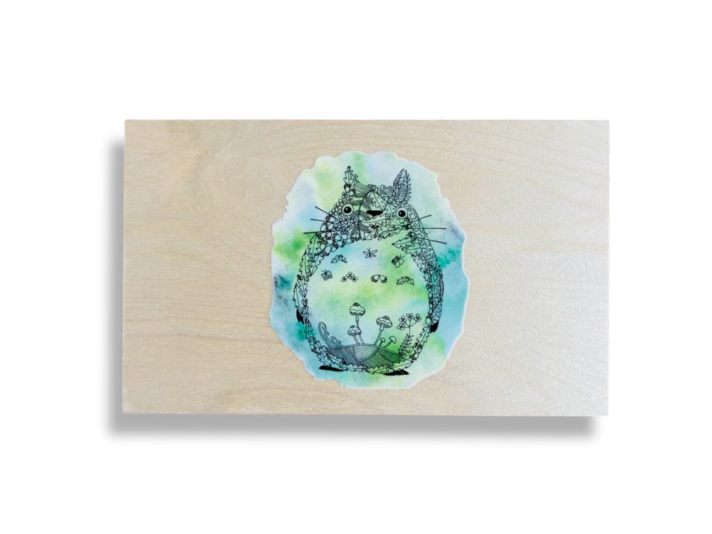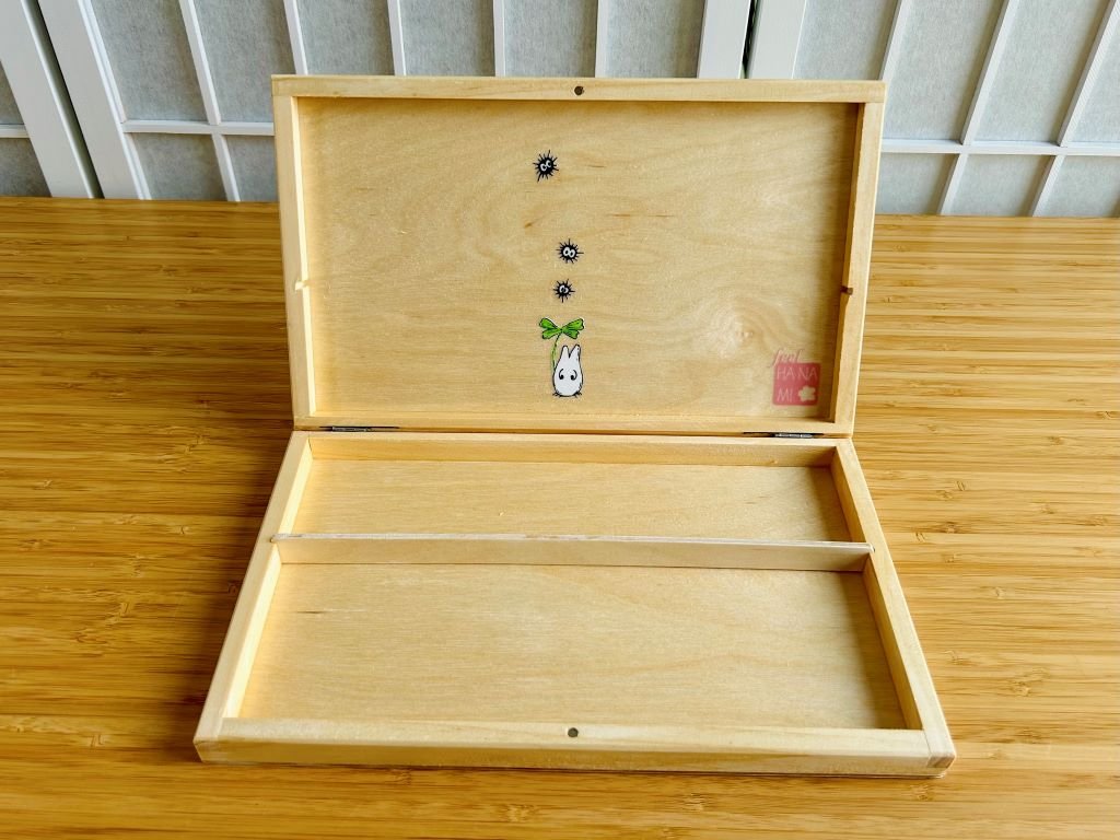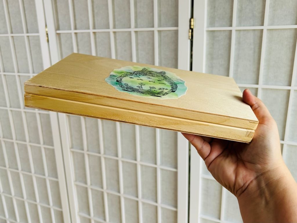 - praktická, a zároveň elegantní, dřevěná krabička ozdobená reprodukcí mých akrylových maleb Totora a černočerňáků z japonského animovaného filmu.