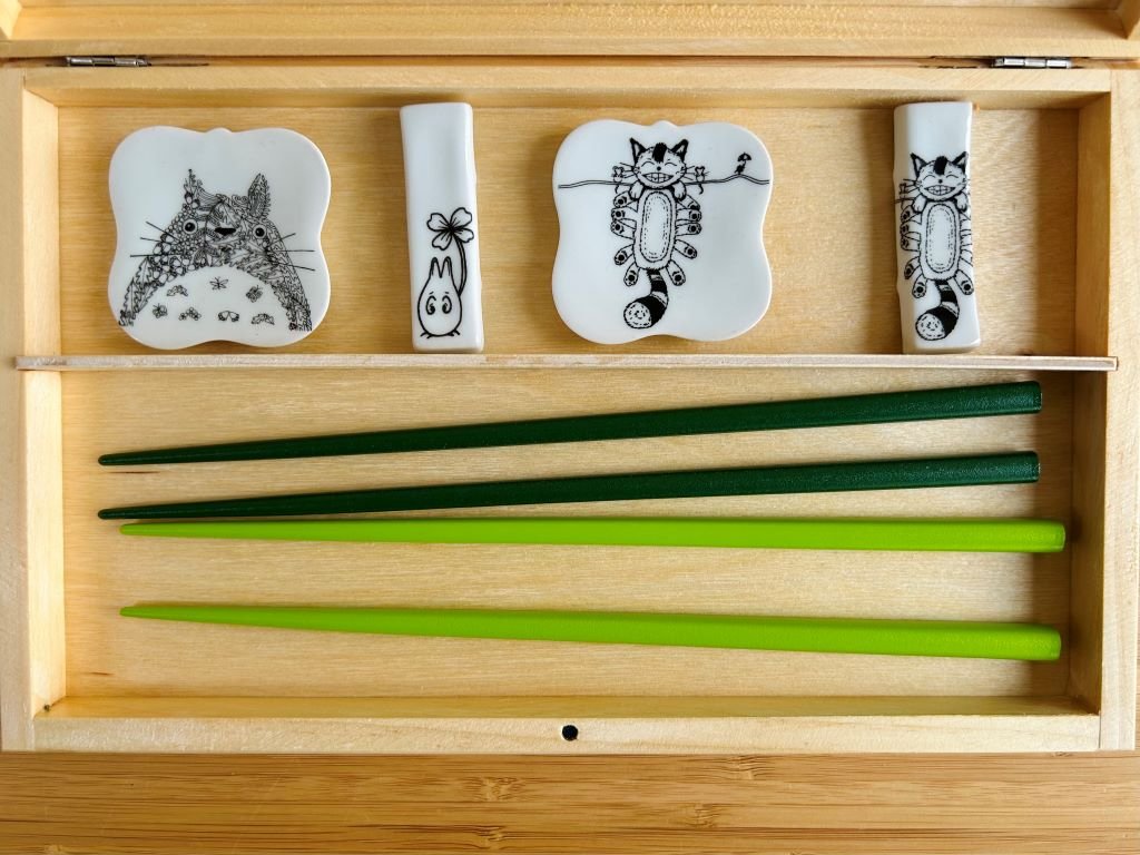 dřevěná krabička "Totoro" na jídelní hůlky a odkladače