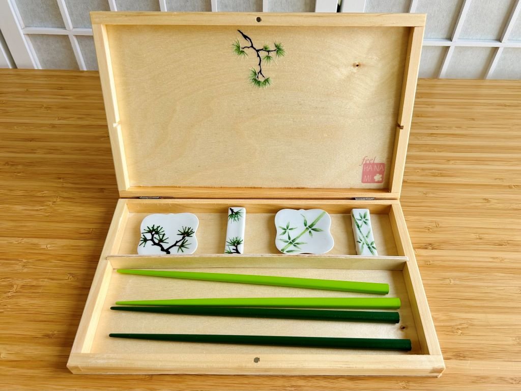 Dřevěné krabičky vyrobené na míru pro bezpečné a krásné uložení vašich jídelních hůlek a odkladačů na hůlky (hashioki)