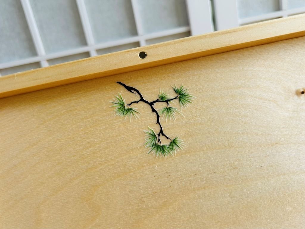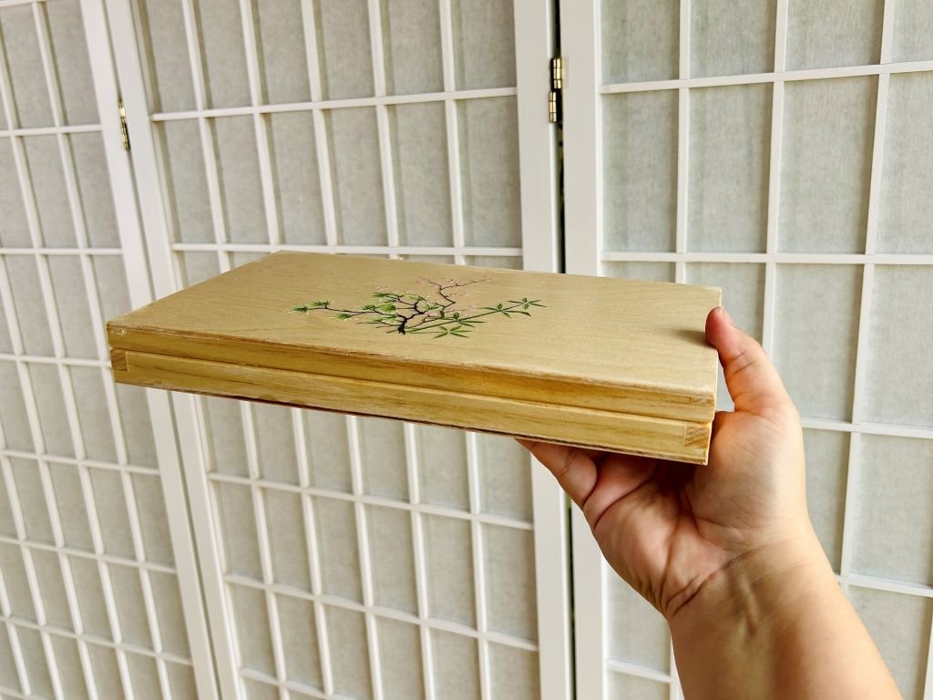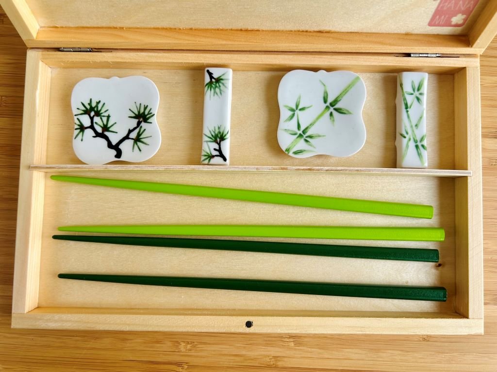 - dřevěnou krabičku jsem nechala vyrobit na míru tak, aby se do ní pohodlně vešly vaše jídelní hůlky i s odkladači na hůlky (hashioki)