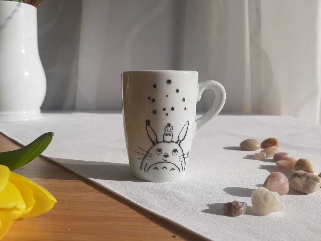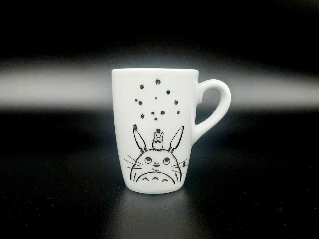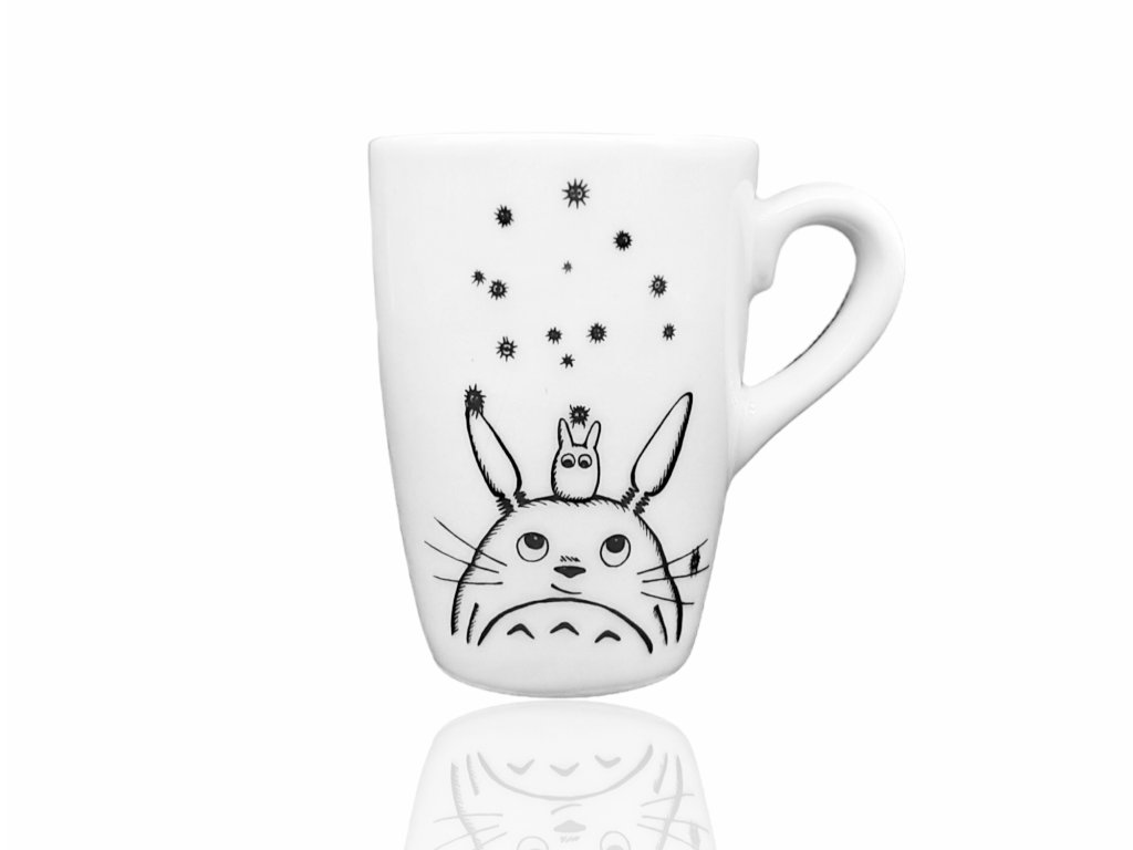 - Porcelánový hrneček ozdobený reprodukcí mé perokresby lesního ducha Totora z japonského animovaného filmu