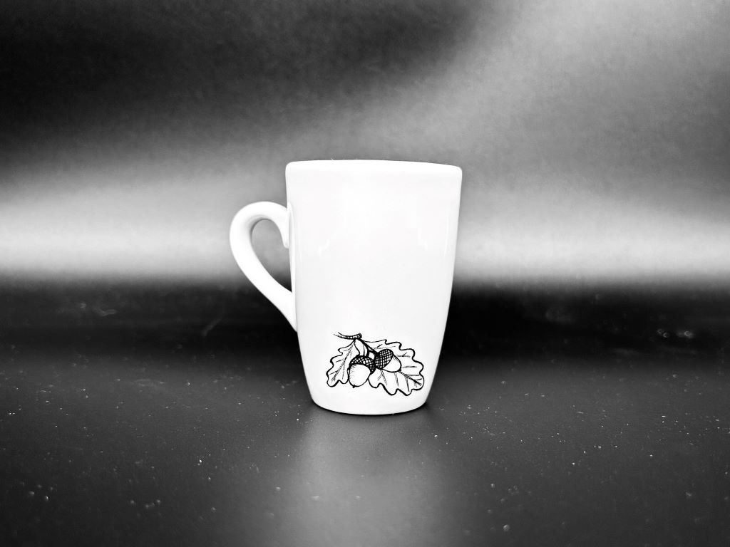 - hrnek je ručně ozdoben obtisky na porcelán, které byly vypáleny v keramické peci na 820 °C