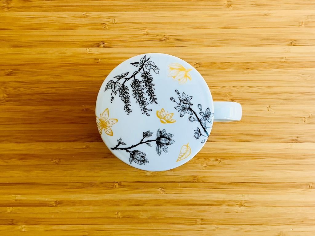 - hrnek je ručně ozdoben obtisky na porcelán, které byly vypáleny v keramické peci na 820 °C