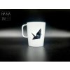 - porcelánový hrnek ozdobený dvoubarevnou origami skládankou jeřába