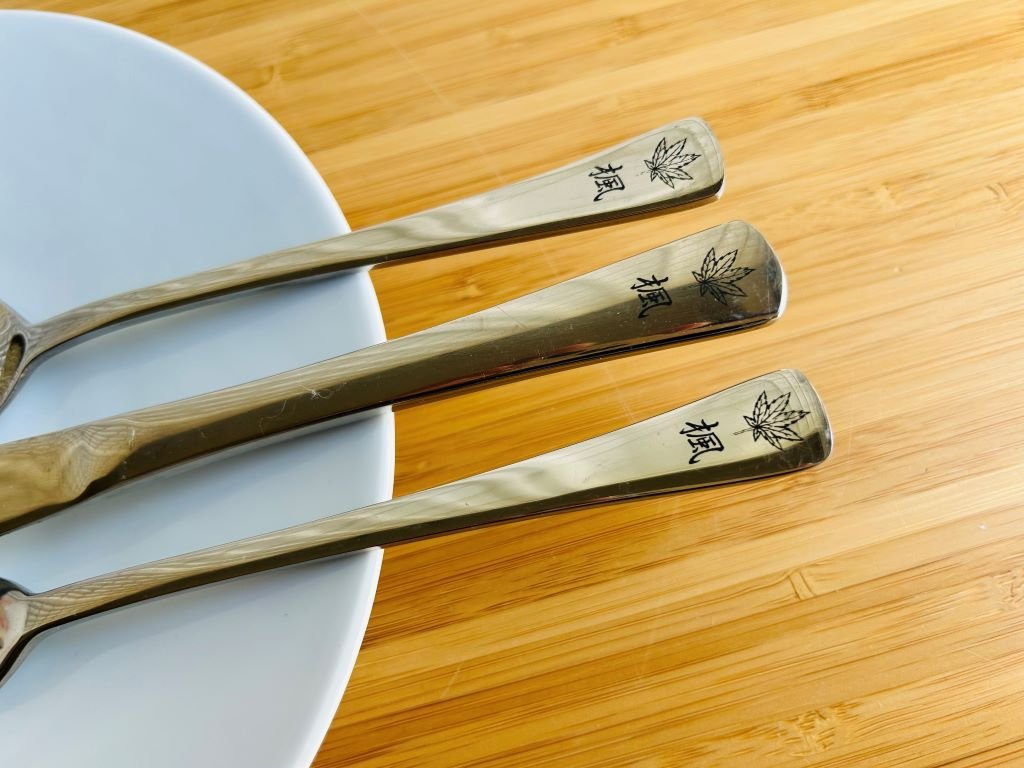 - na příboru je vygravírovaný javorový list a japonský znak kanji "javory"
