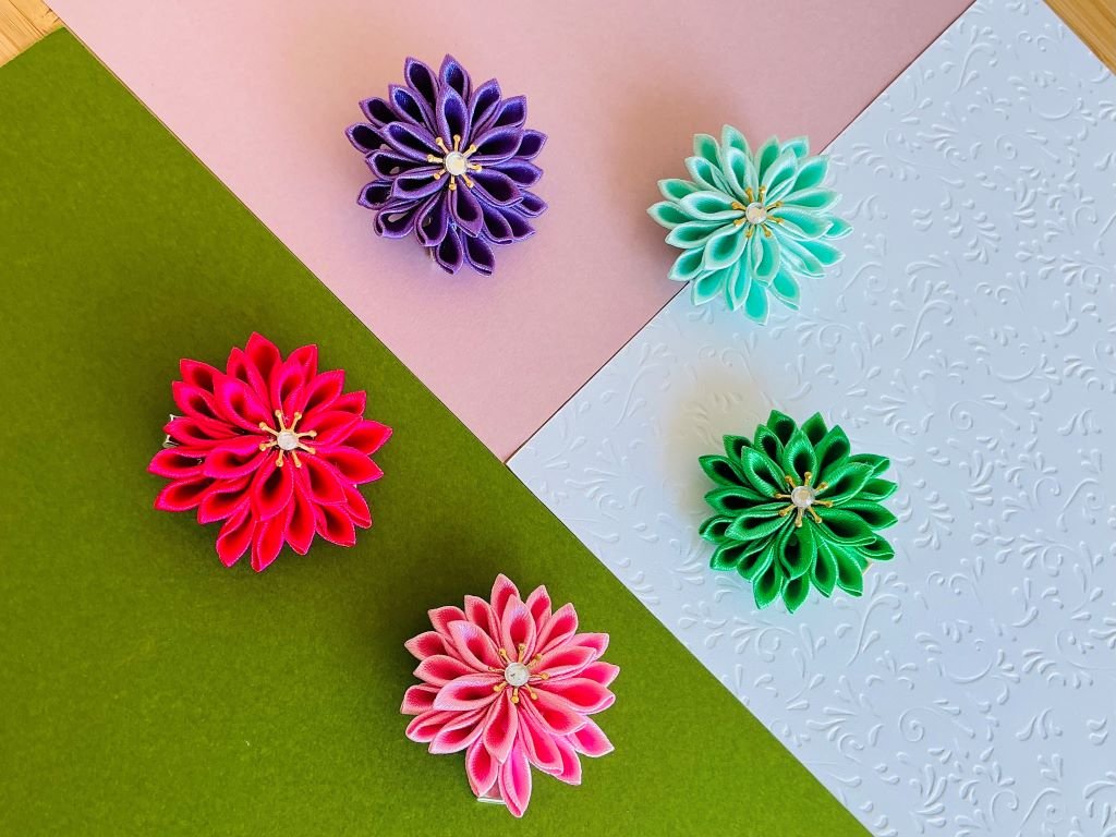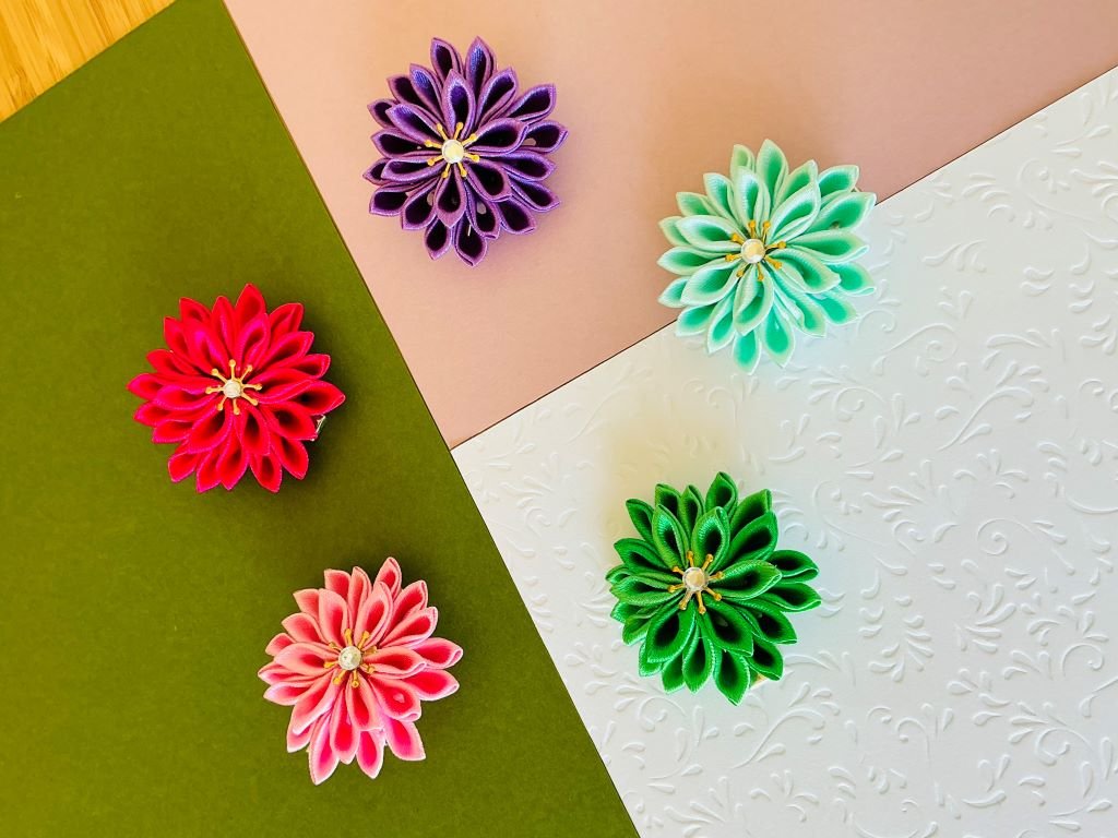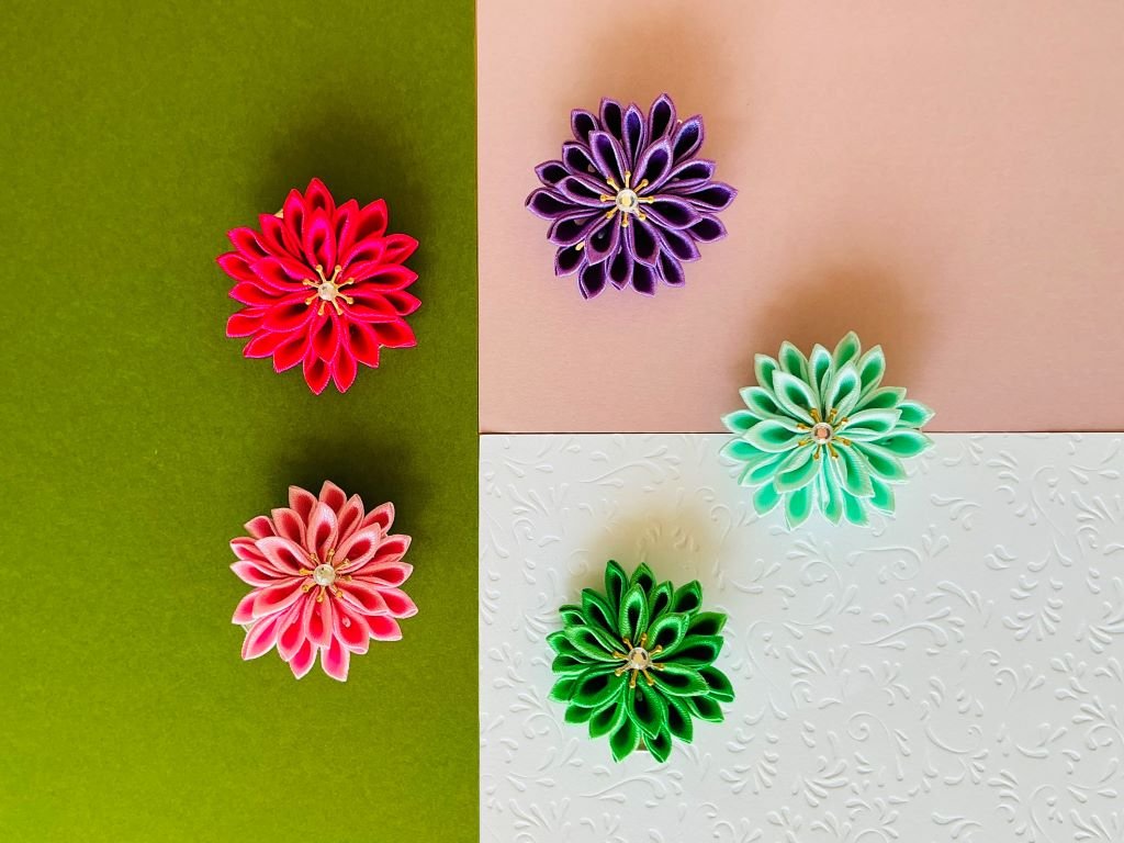- kanzashi ozdoby se vyrábí skládáním látkových stužek a jejich následným slepením k sobě