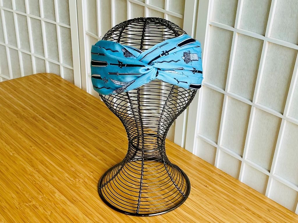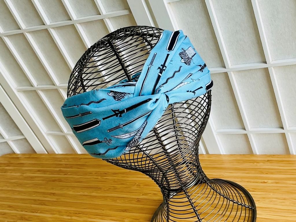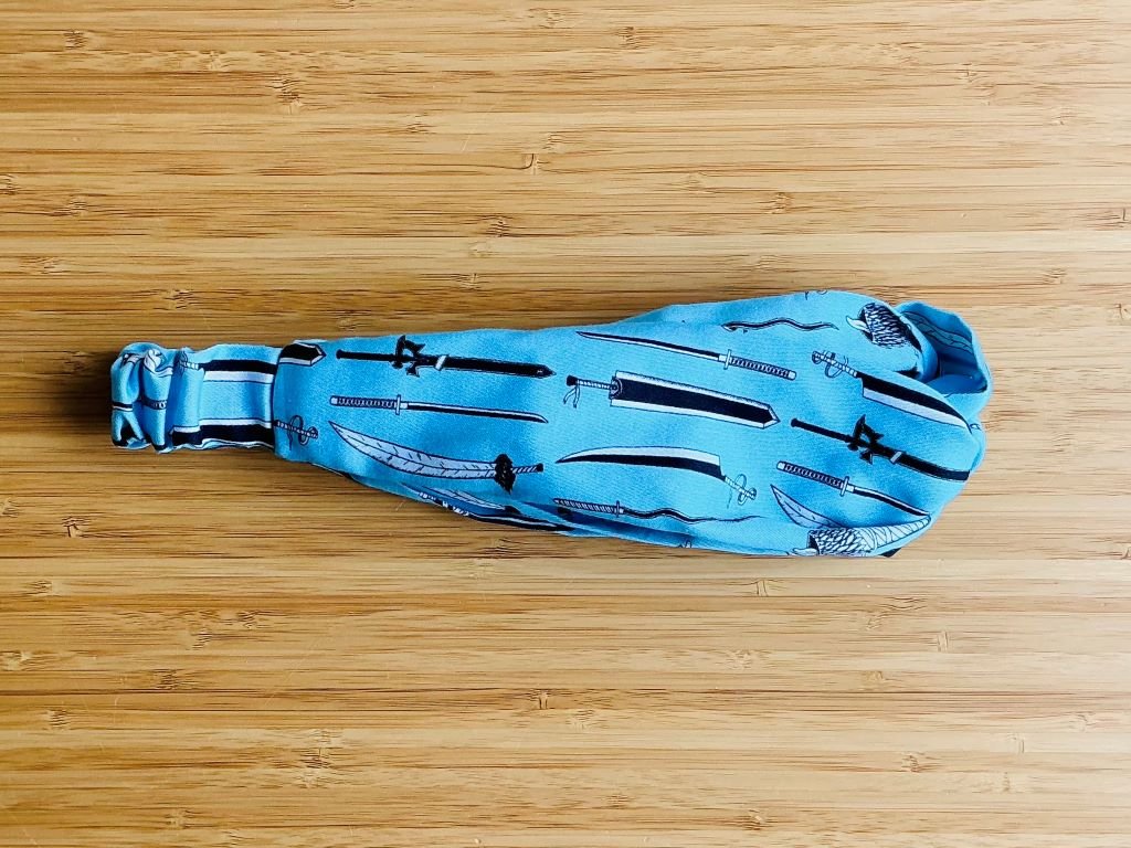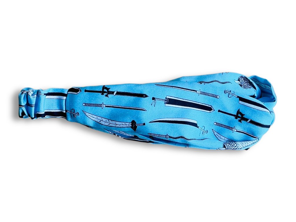 - elegantní látková čelenka ozdobená reprodukcí mých akrylových maleb a perokreseb mečů ze známých anime seriálů