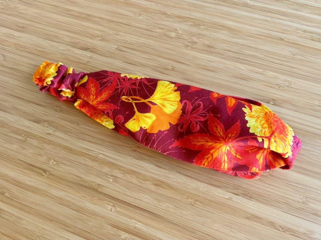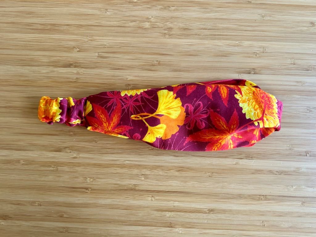 Látková čelenka s gumičkou s nádechem podzimního parku v Japonsku