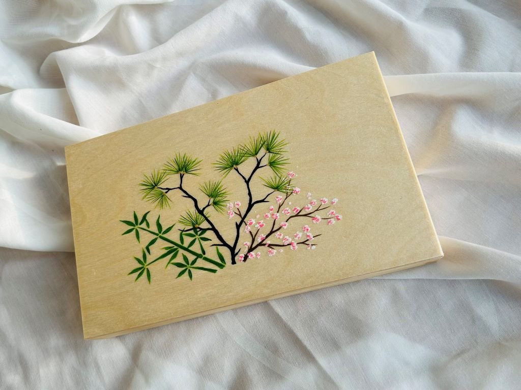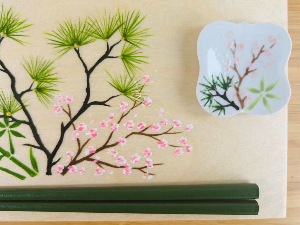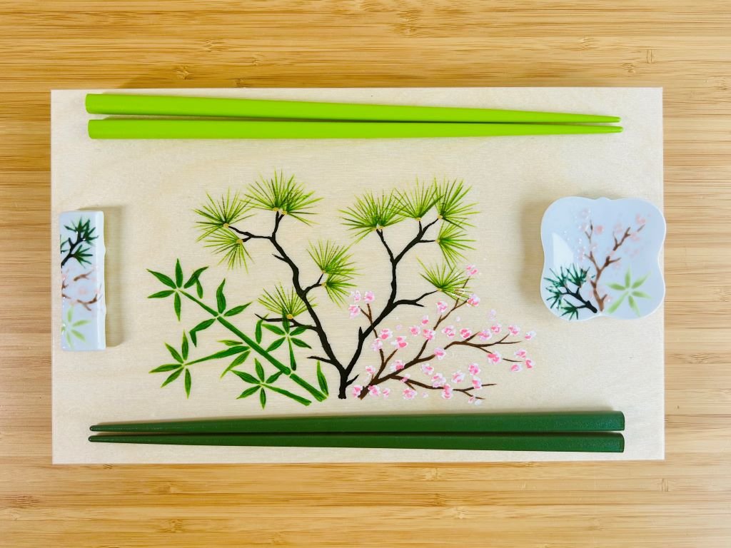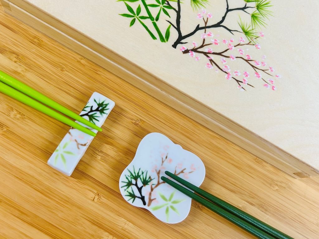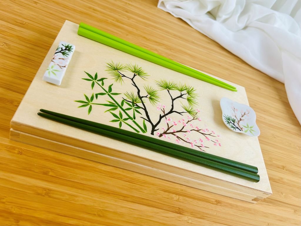 - praktická, a zároveň elegantní dárková sada na Vaše jídelní potřeby v japonském stylu ozdobená mou malbou bambusu, borovice a slivoně