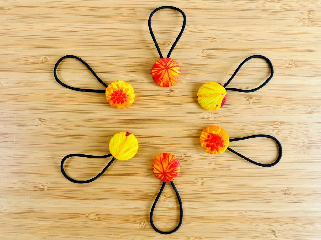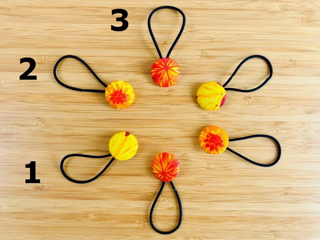 - látková ozdoba (butonek) má průměr cca 22 mm