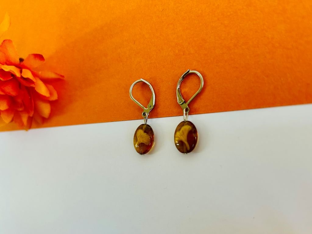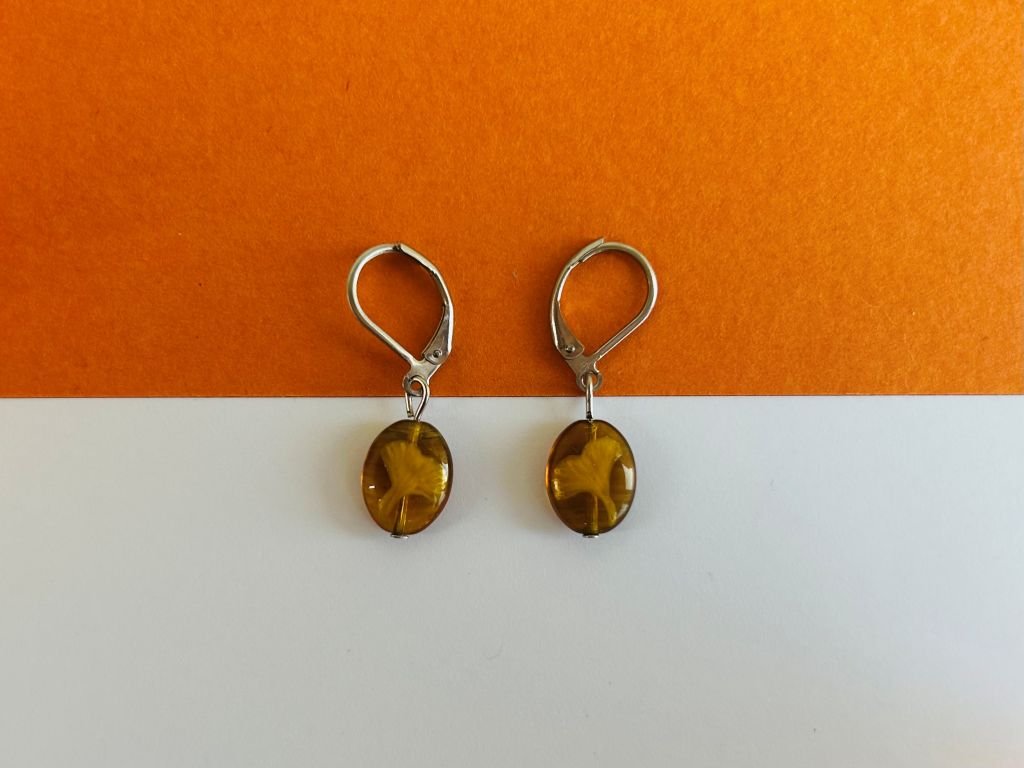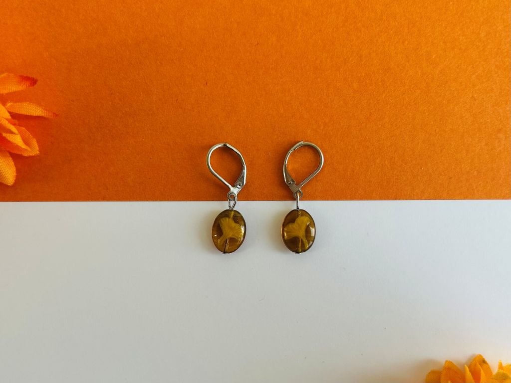 Malé skleněné visací náušnice s ginkgo listy