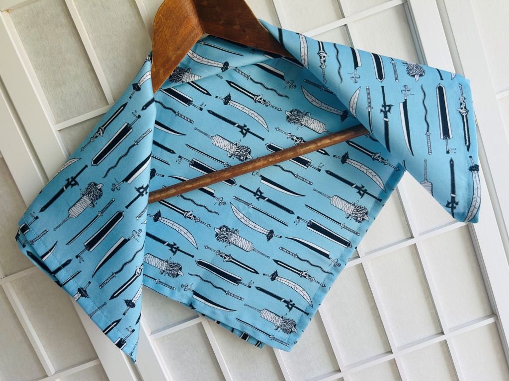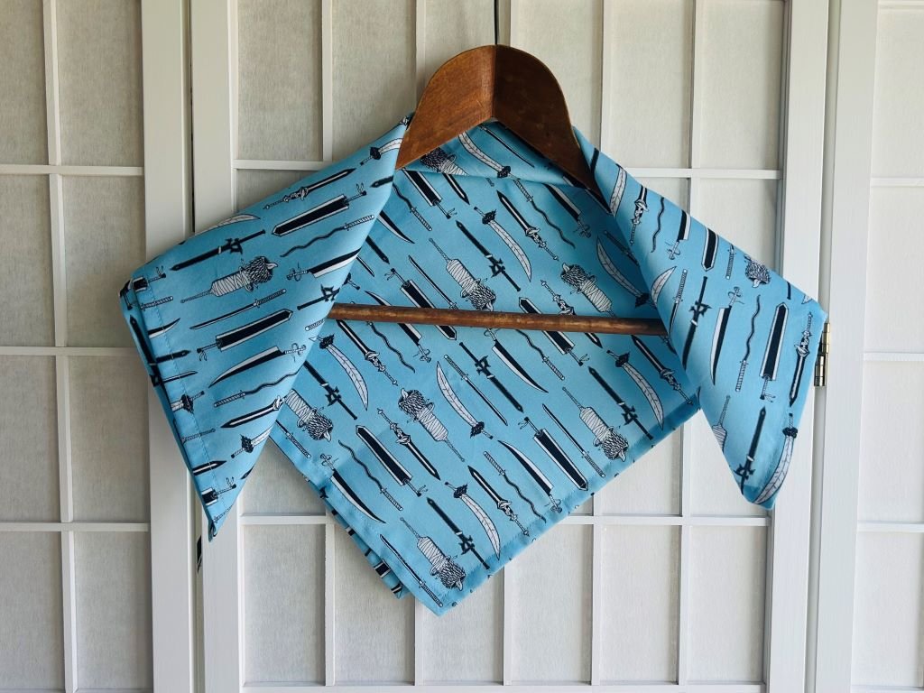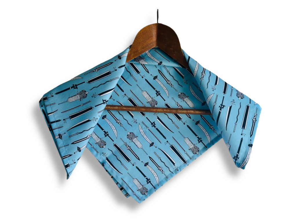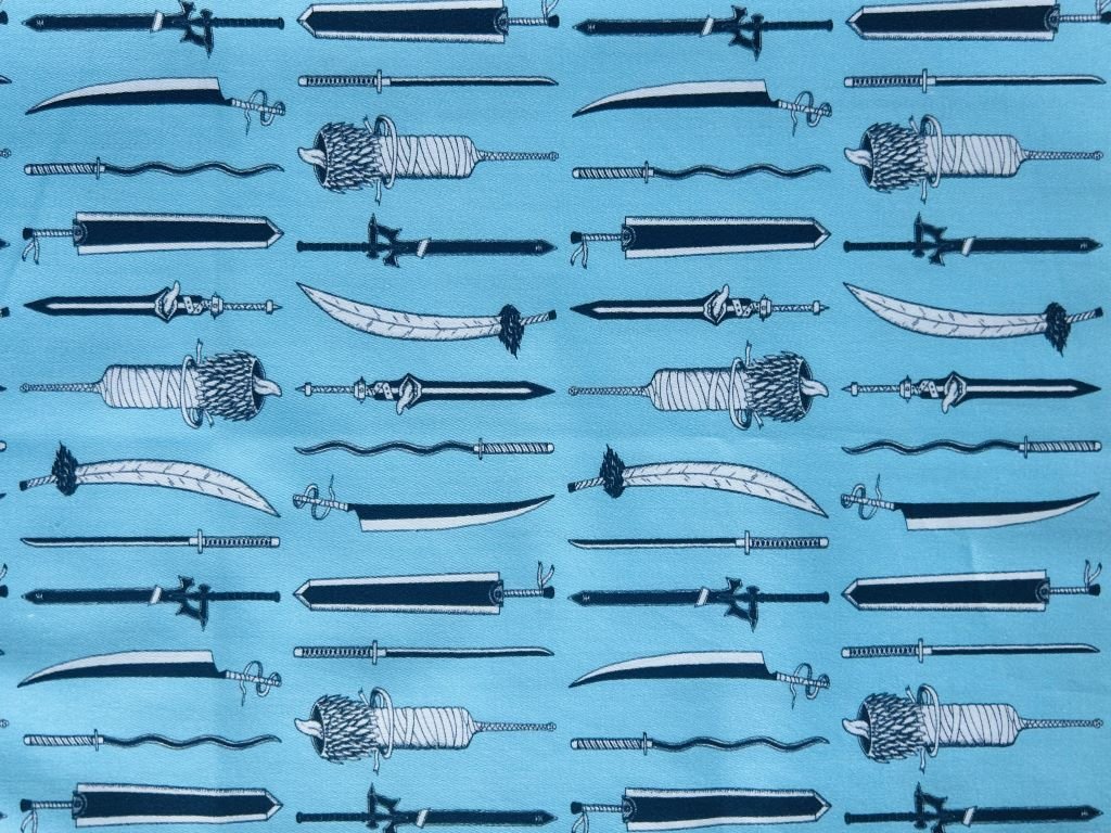 - elegantní malý šáteček ozdobený reprodukcí mých akrylových maleb a perokreseb mečů ze známých anime seriálů