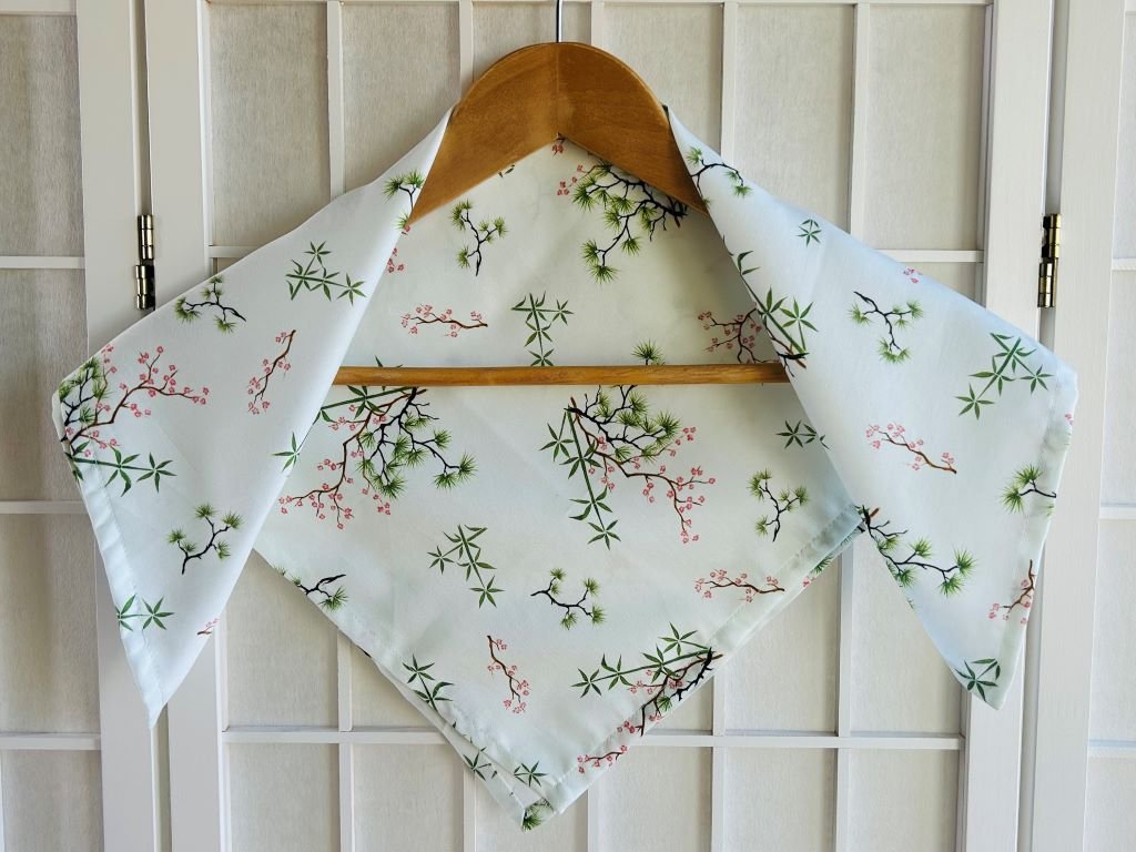 - šátek je multifunkční a využijete ho nejen jako praktický módní doplněk, ale i jako ubrus na stůl nebo na balení dárků technikou furoshiki
