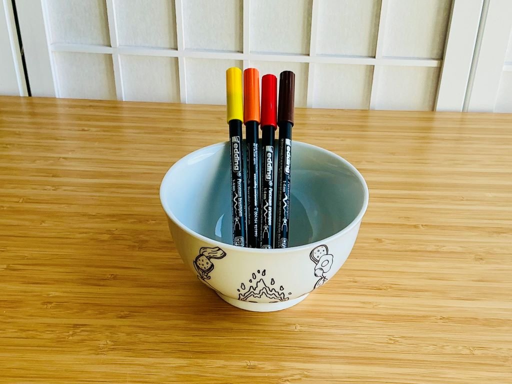 Miska jako omalovánka s fixami: