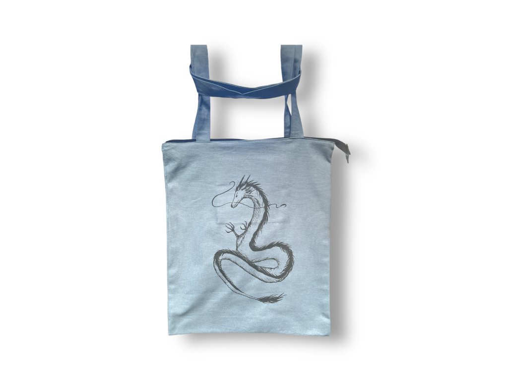 Praktická nákupní taška se zipem a vnitřní kapsičkou s drakem