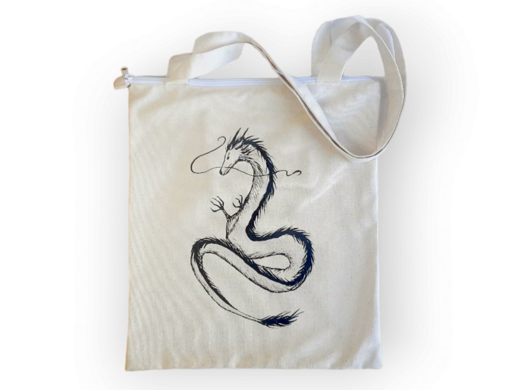 Praktická nákupní taška se zipem a vnitřní kapsičkou s vodním drakem
