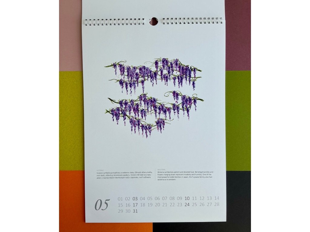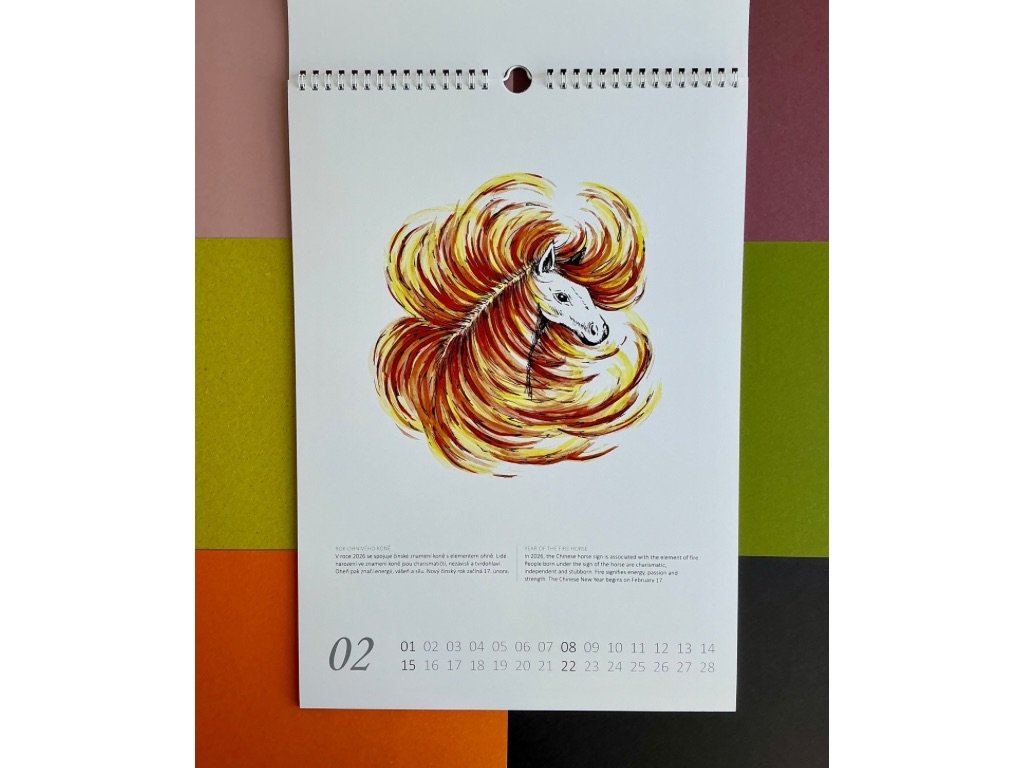 - kalendář je opatřen bílou spirálou s očkem pro zavěšení po jeho kratší straně