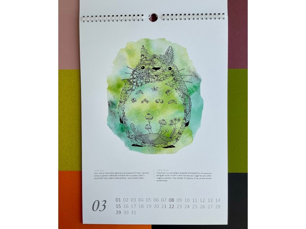 Nástěnný kalendář s motivy z japonských zahrad, mytologie i anime filmů
