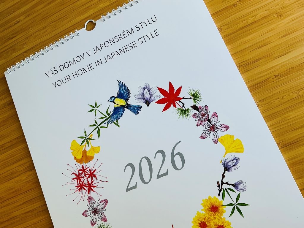 - nástěnný kalendář na rok 2026 ozdobený reprodukcí mých akrylových maleb a perokreseb inspirovaných Japonskem