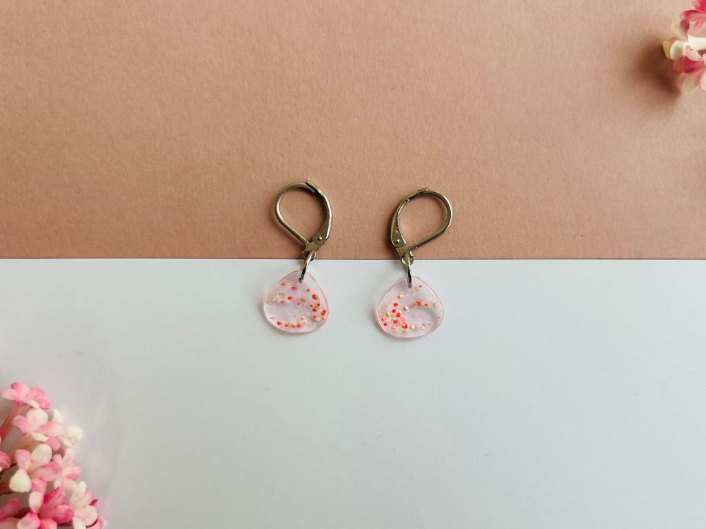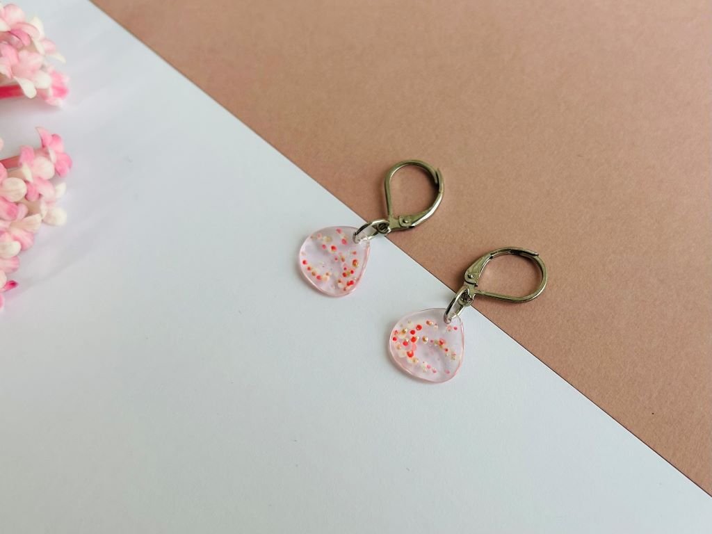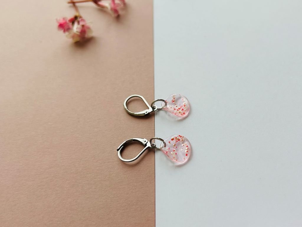 - na skleněné náušnice jsem namalovala růžové kvítky rozkvetlé sakury