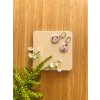 - Na keramické náušnice namalovala růžové kvítky kvetoucí sakury