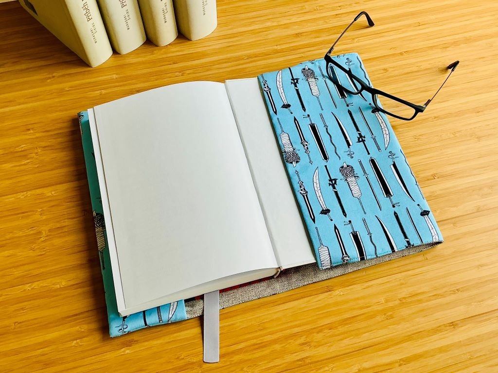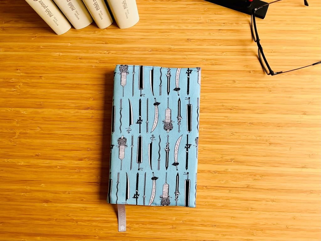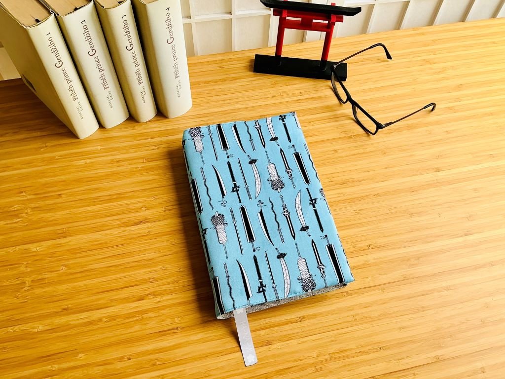 Praktický velký textilní obal na knihu s japonskými meči ze známých anime