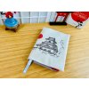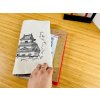 - praktický velký textilní obal na knihu s motivem inspirovaným japonským hradem s červeným sluncem