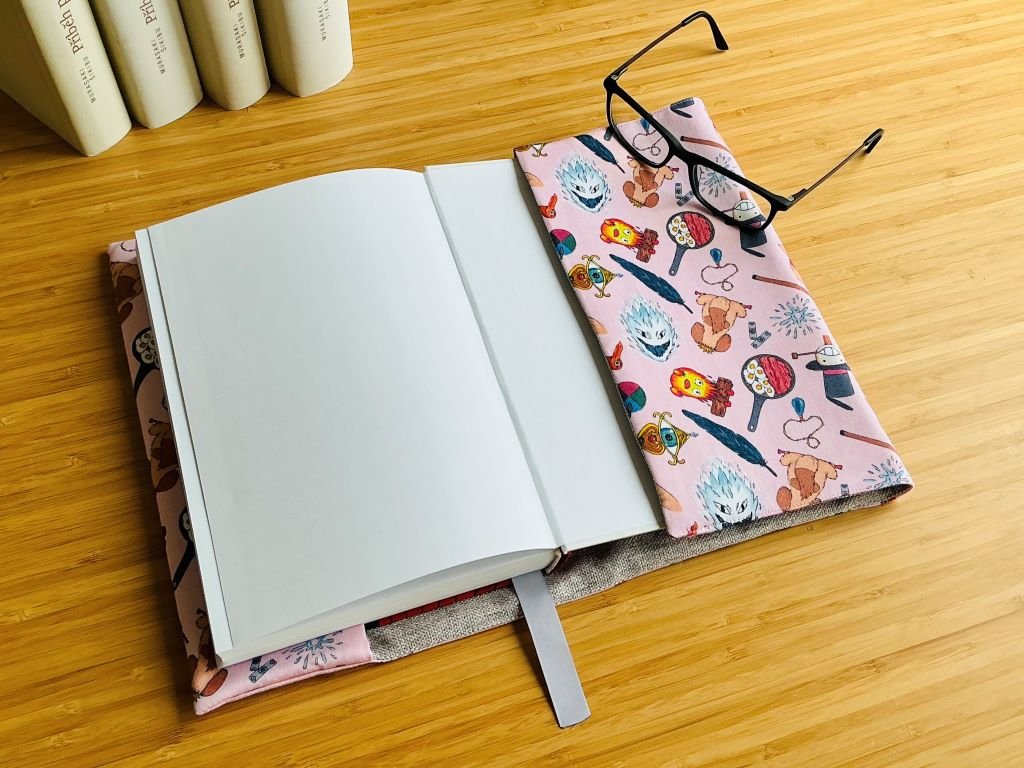 - tento obal je "rostoucí", je tak vhodný i na větší knížky. Díky všité gumičce s knížka uvnitř obalu ani nehne :)