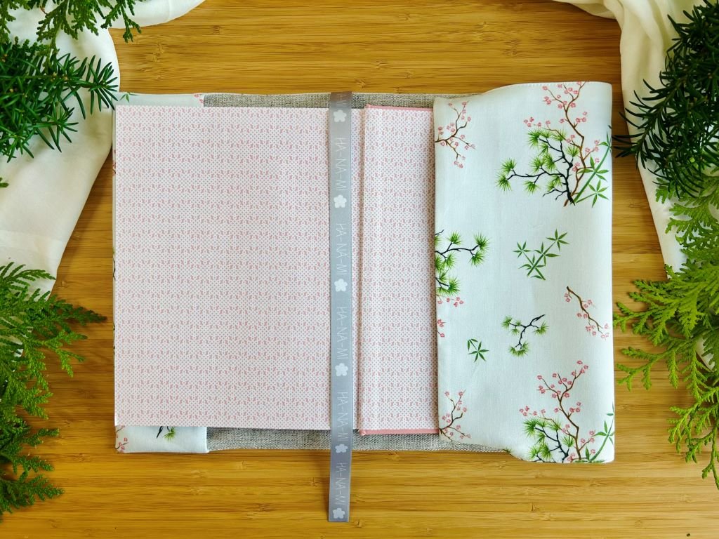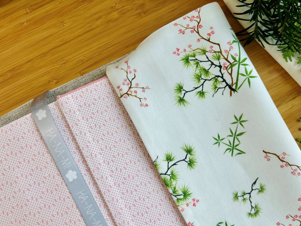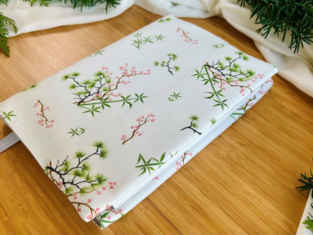 Praktický velký textilní obal na knihu plný bambusu, borovice a slivoně