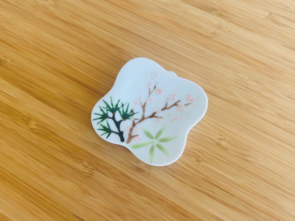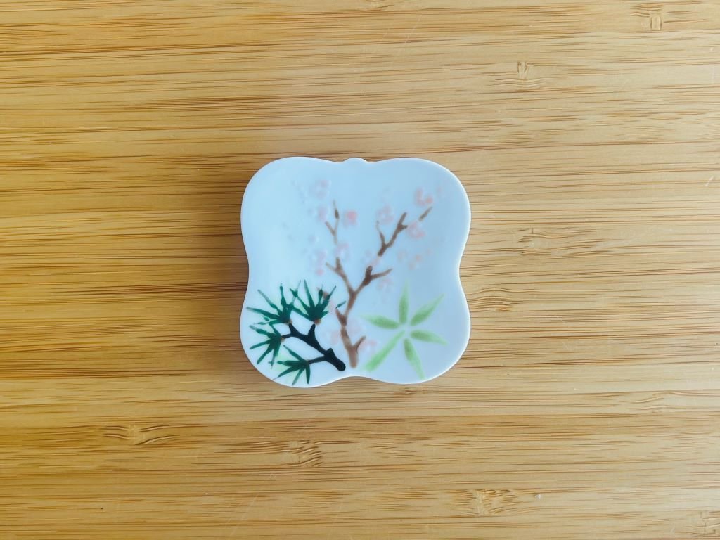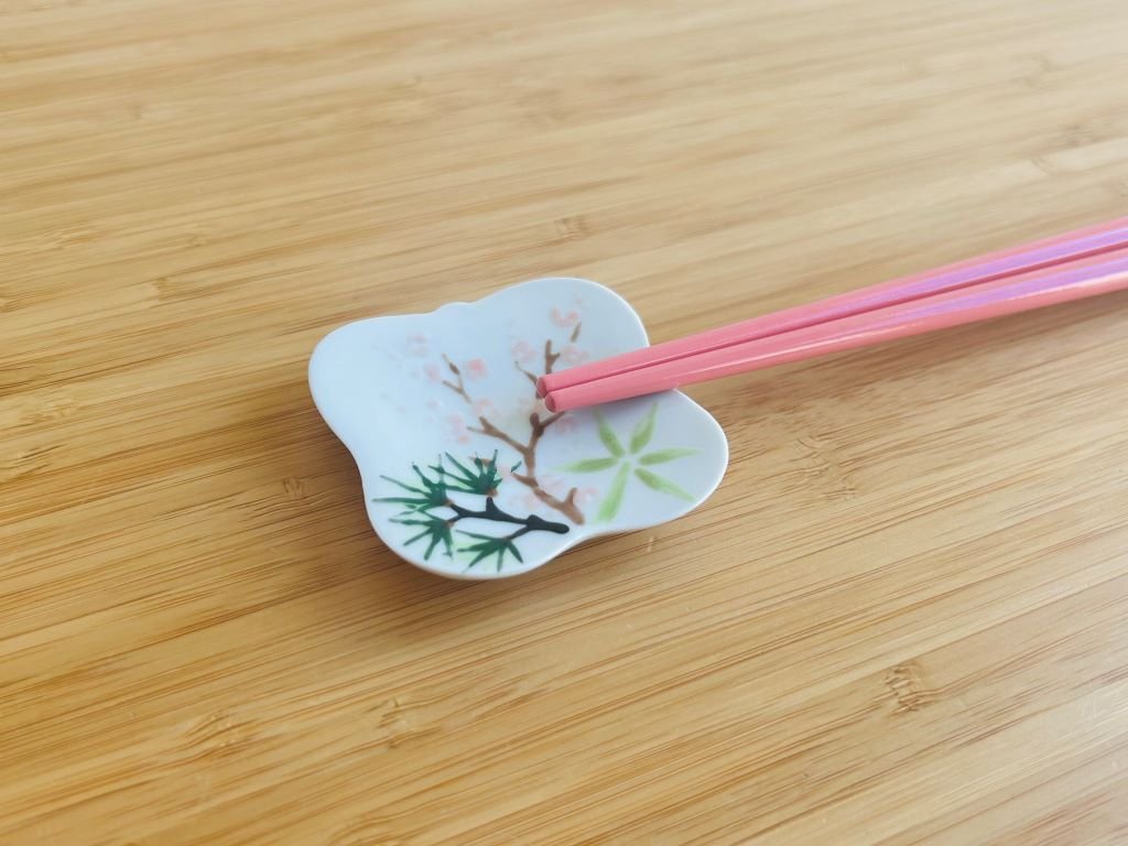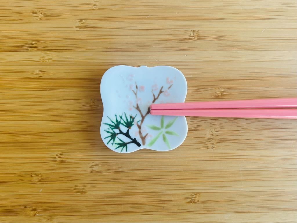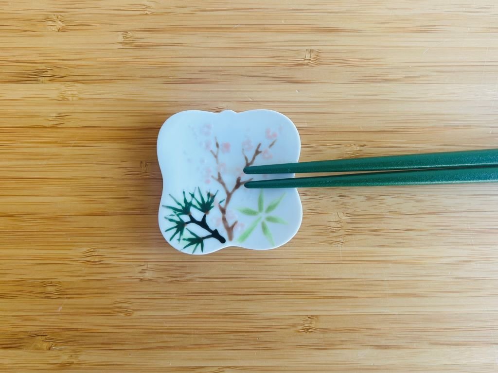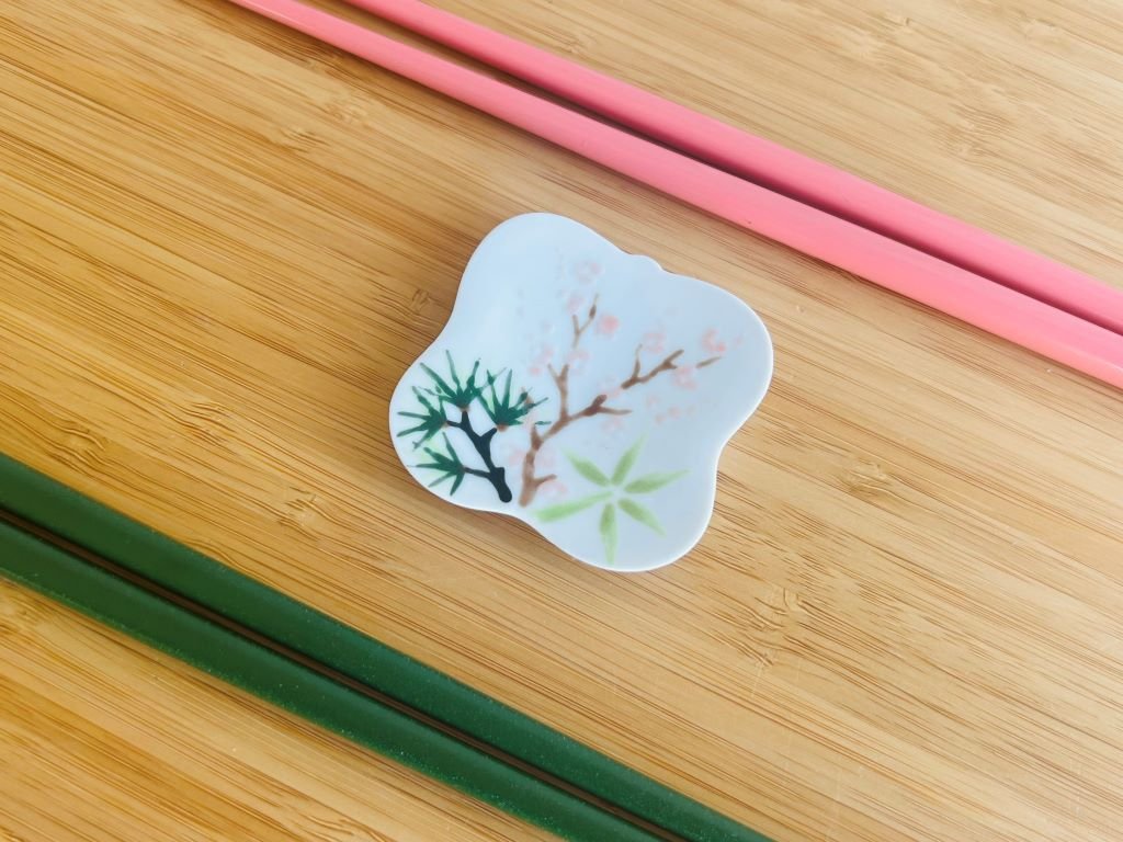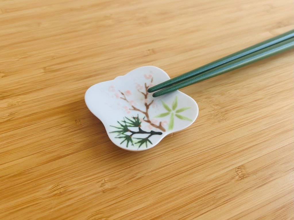 Čtvercový odkladač na hůlky ozdobený ruční malbou bambusu, borovice a slivoně