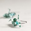 Náušnice vytvořené z origami papíru od www.maiki.cz. Je z něj složený tvar tradičního jeřába doplněný korálky z malachitu