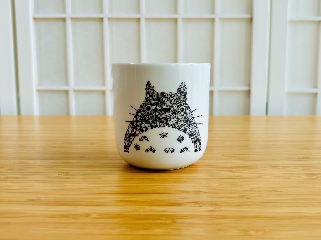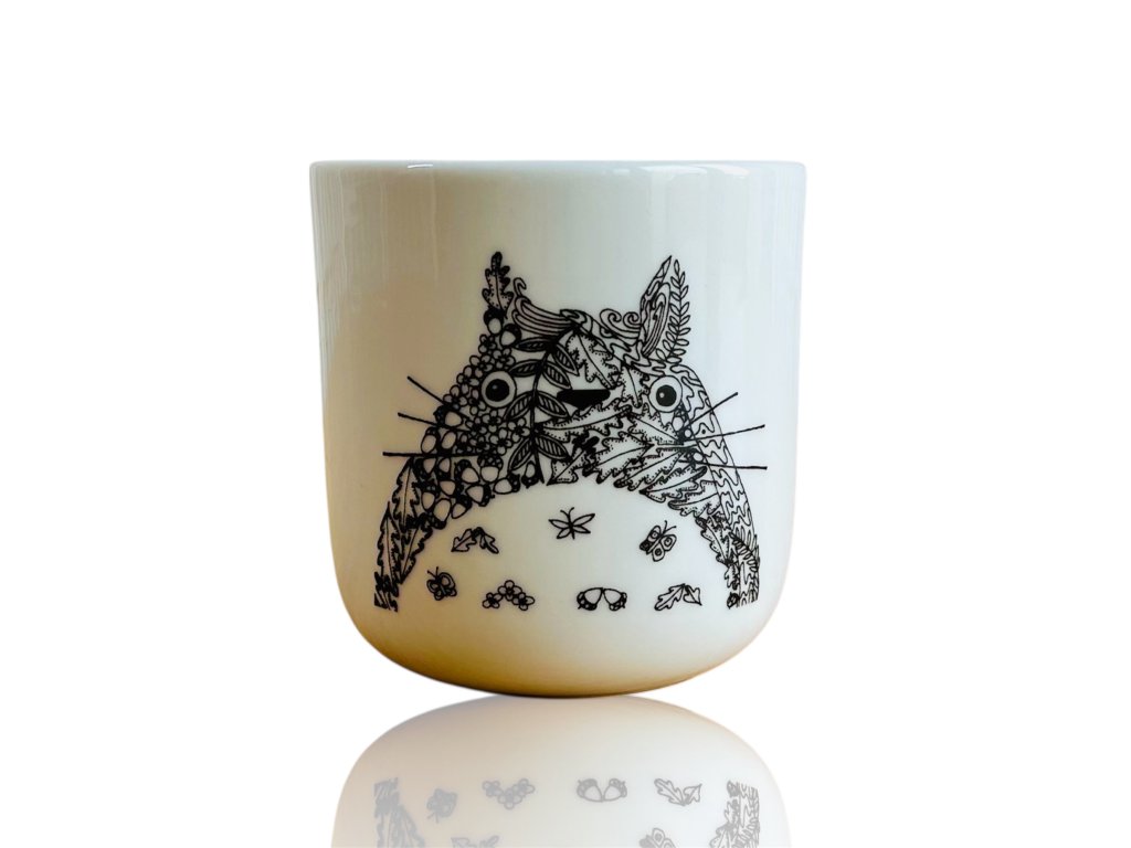 - porcelánový pohárek mojí autorskou grafikou inspirovanou lesním duchem Totorem z japonského animovaného filmu