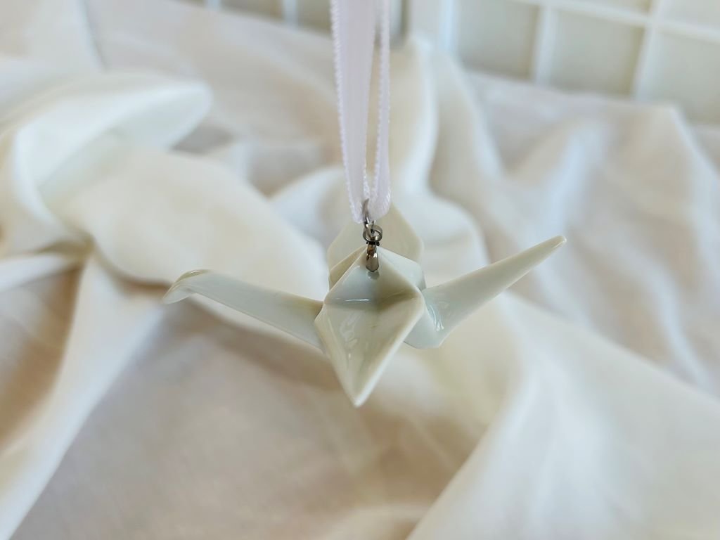 Jeřáb má rozpětí křídel cca 8 cm a byl vyroben v české porcelánce
