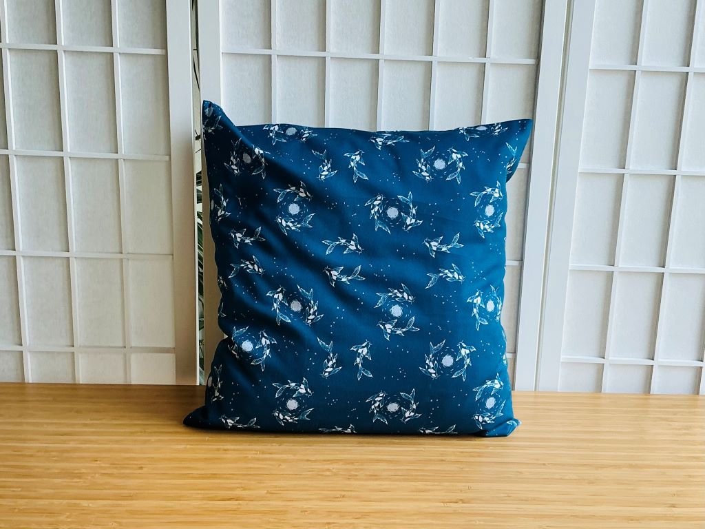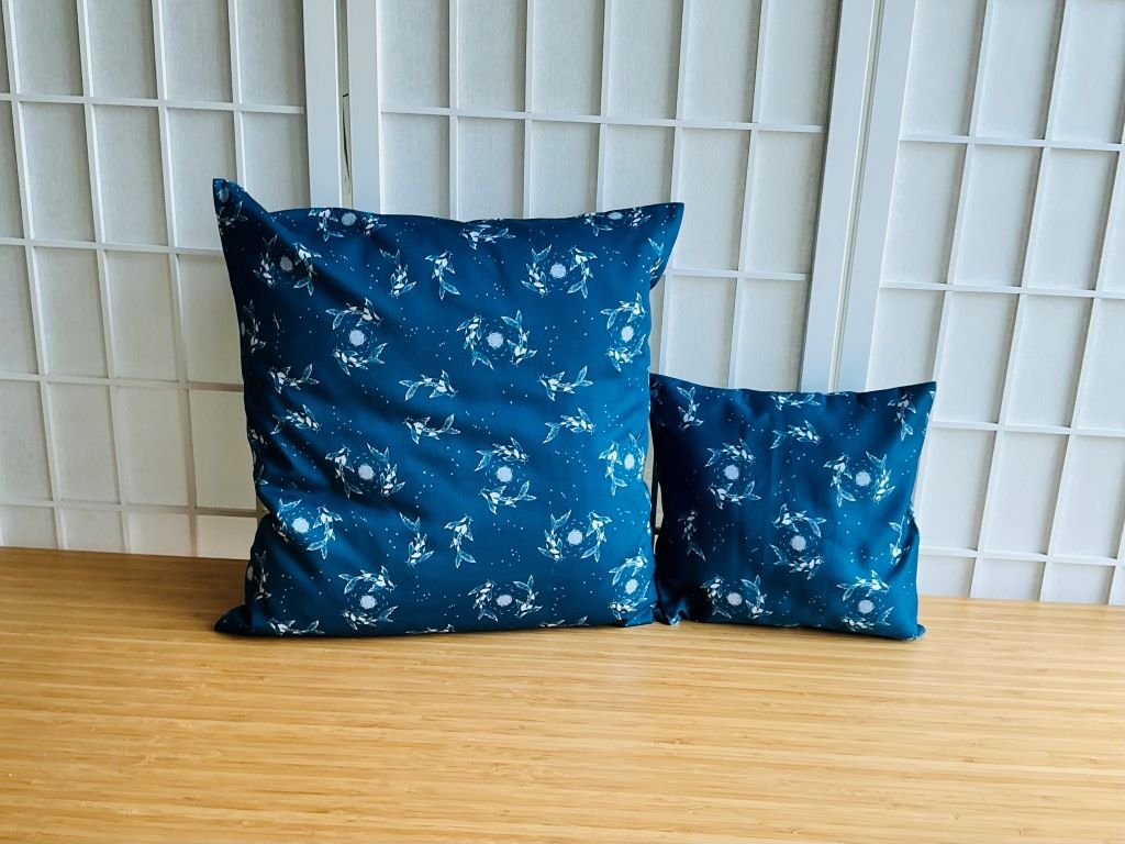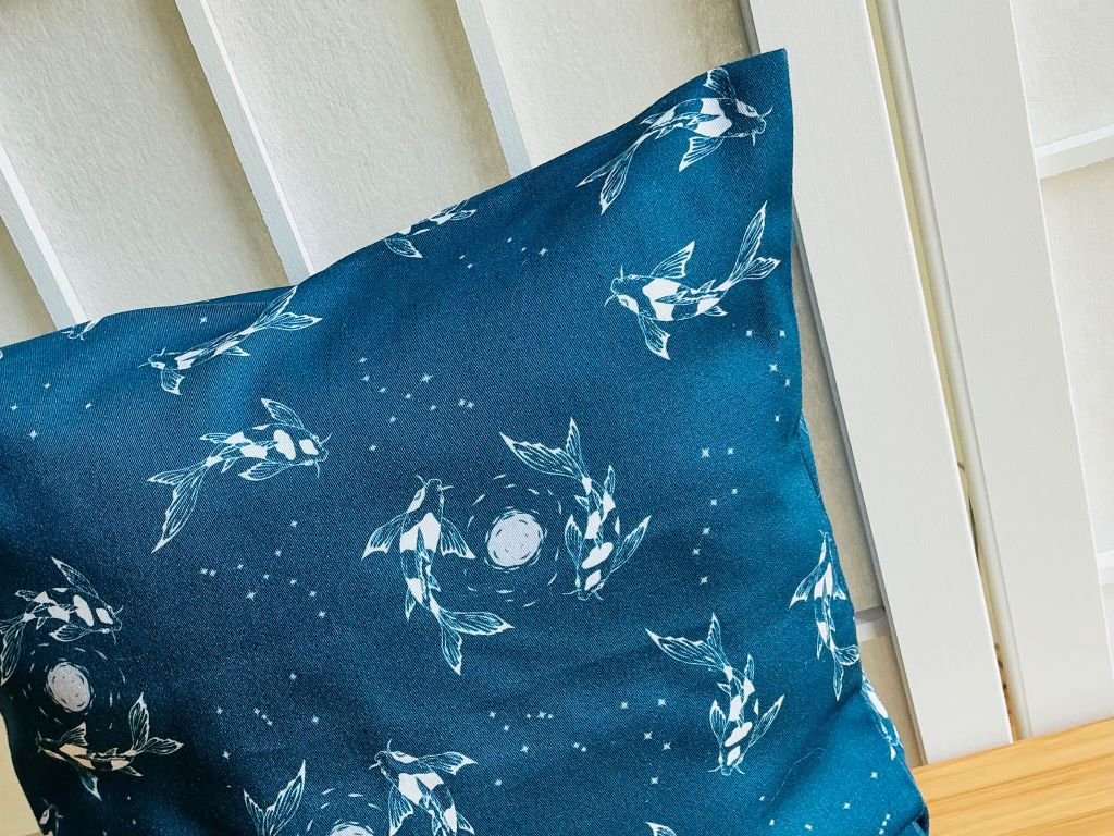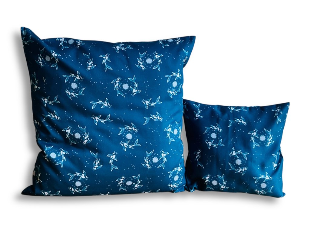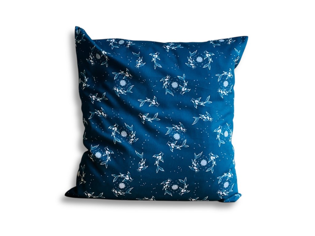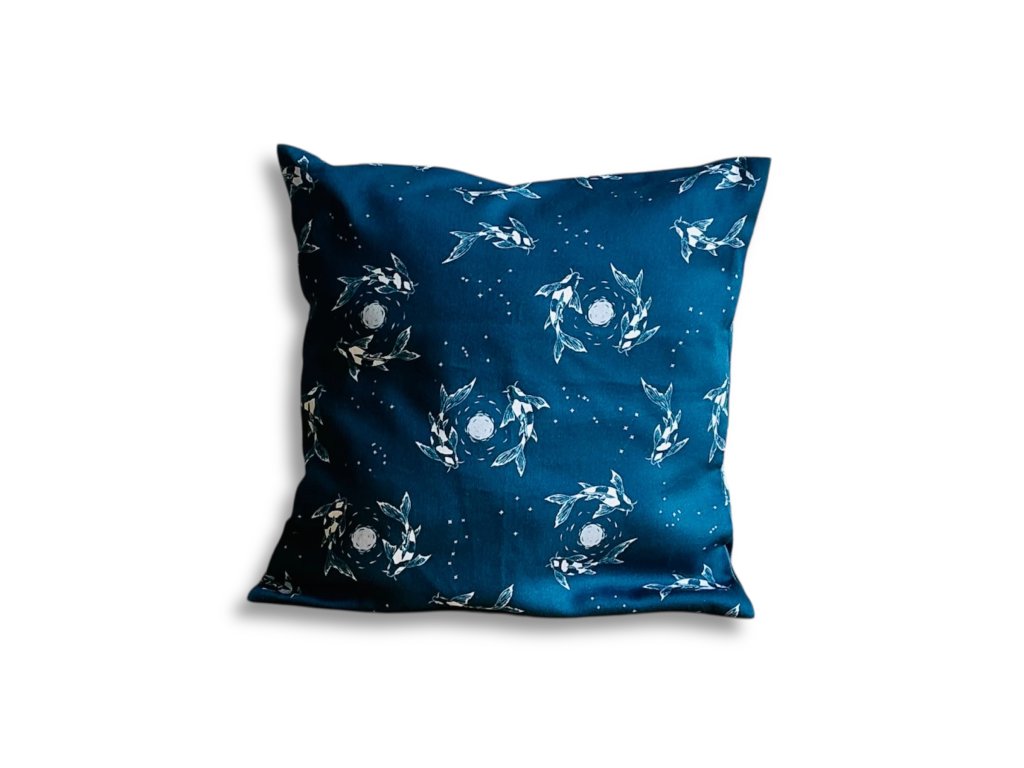 Textilní povlak na polštář plný koi kapříků a měsícem