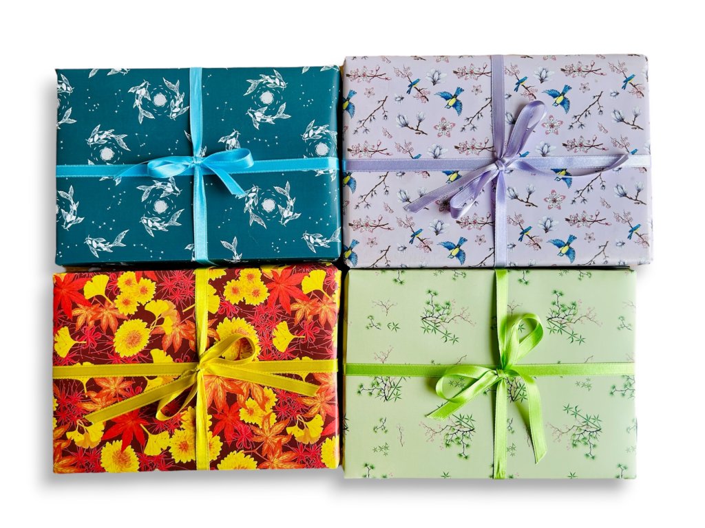 Sada balících papírů s motivy typickými pro roční období v Japonsku