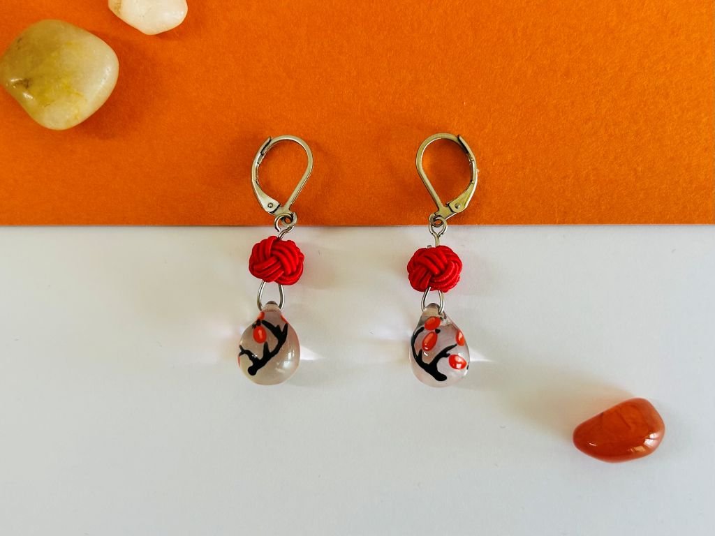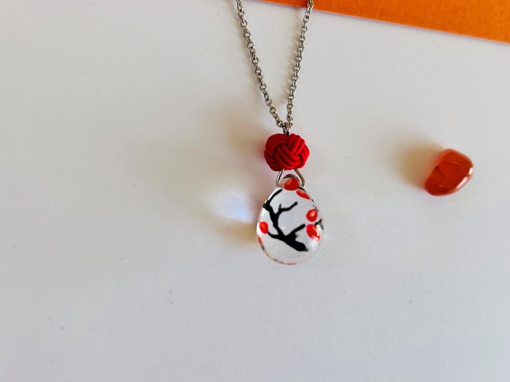 - červená kulička je tzv. TAMA uzlík je vytvořený japonskou rukodělnou technikou zvanou mizuhiki