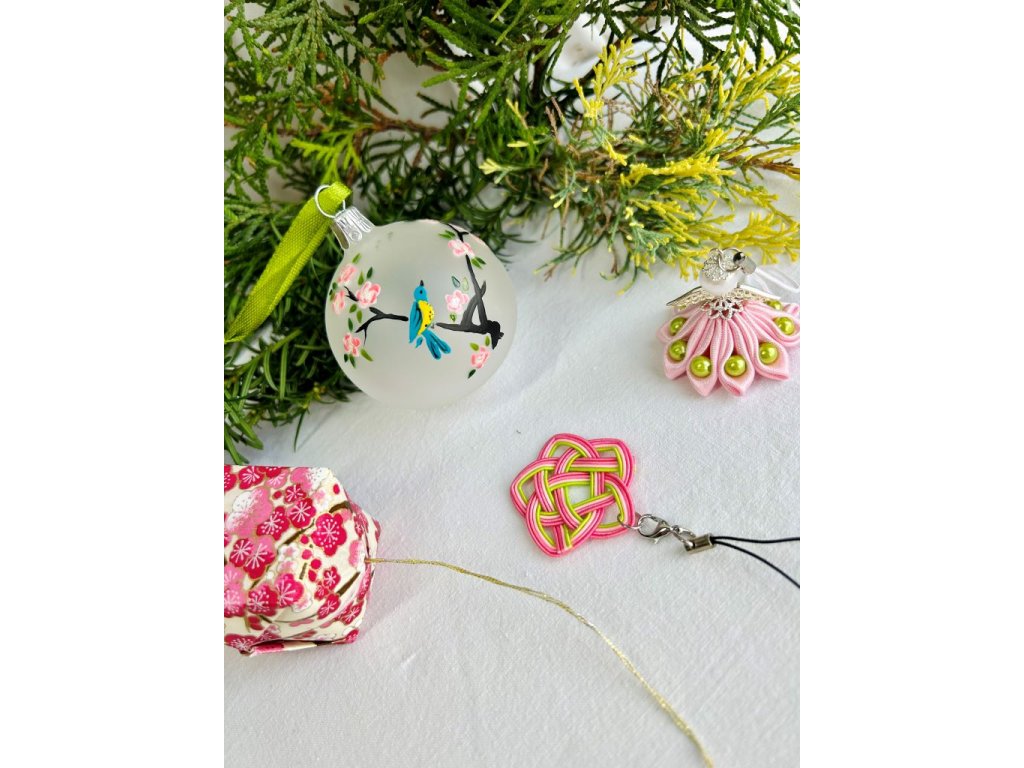 sada vánočních ozdob "Ptáček na sakuře" s kouličkou
