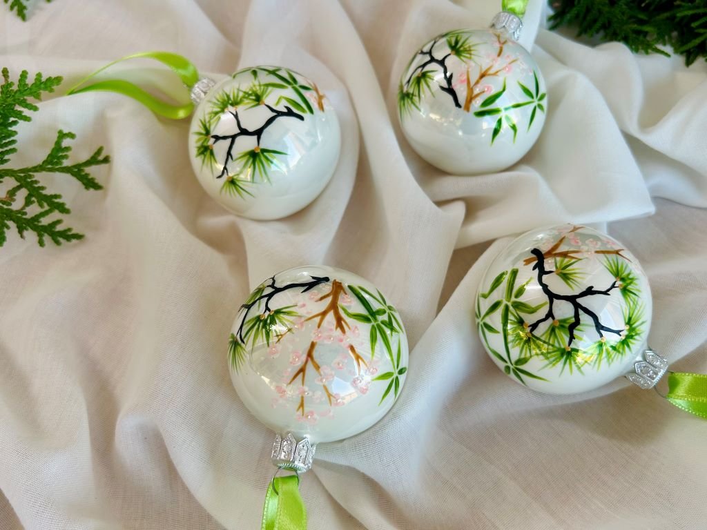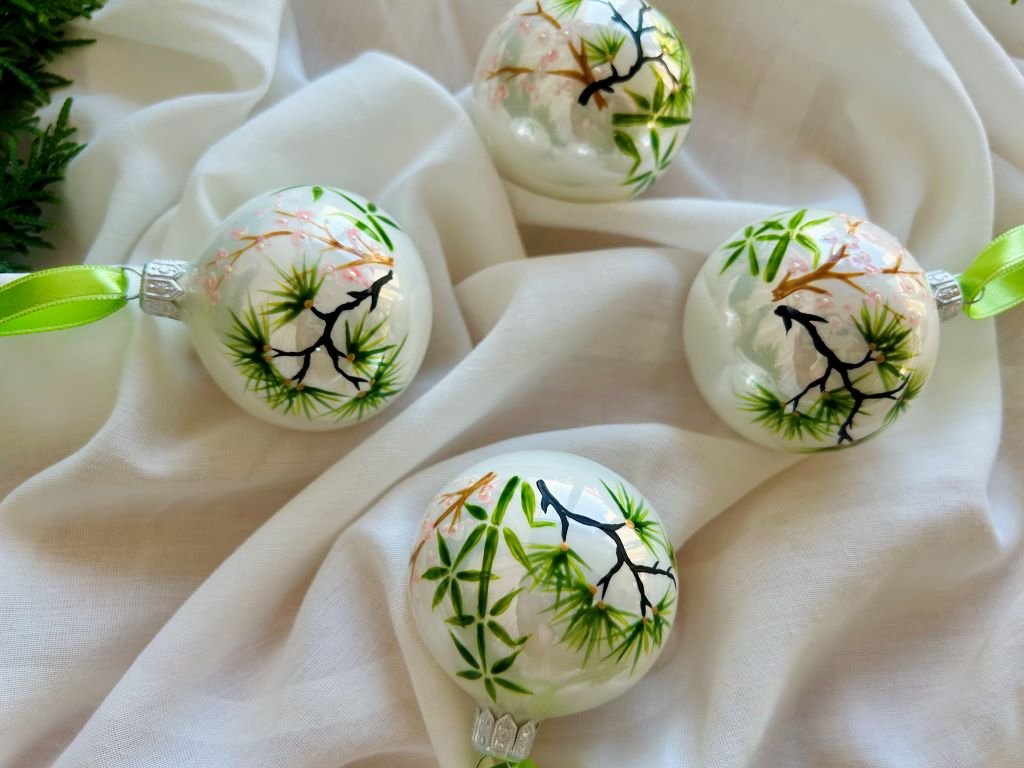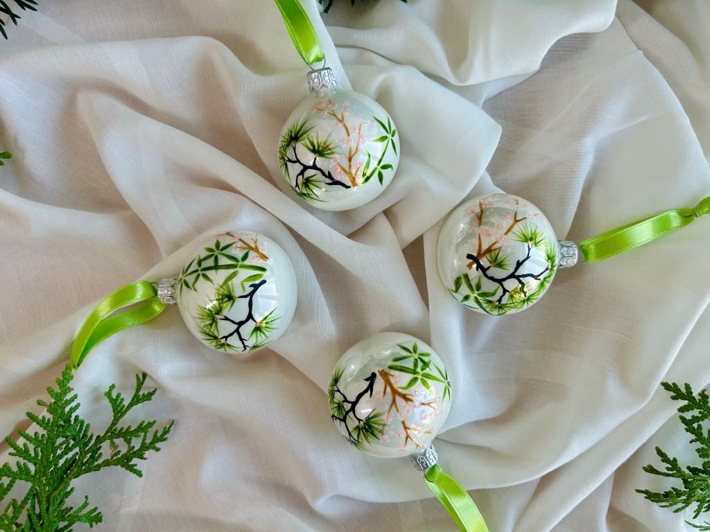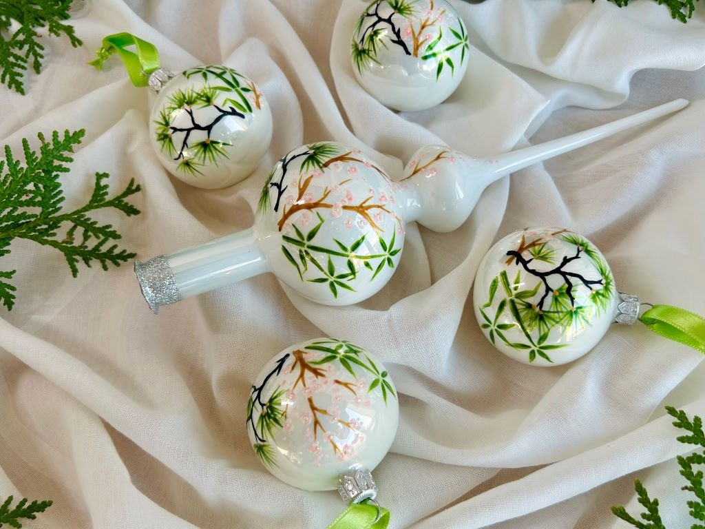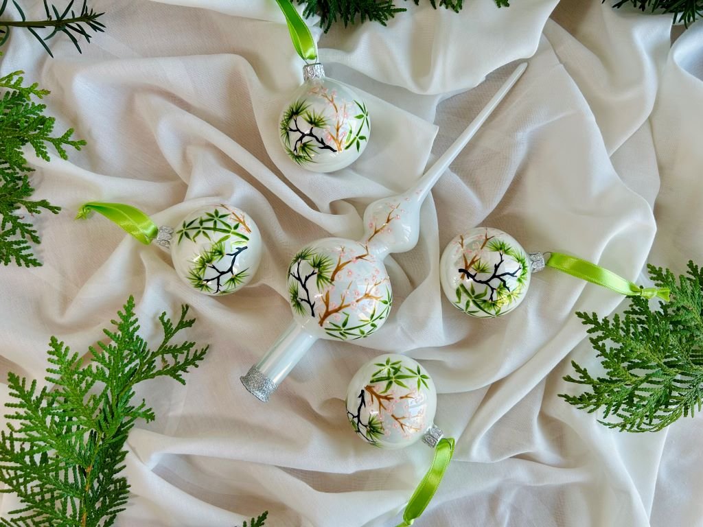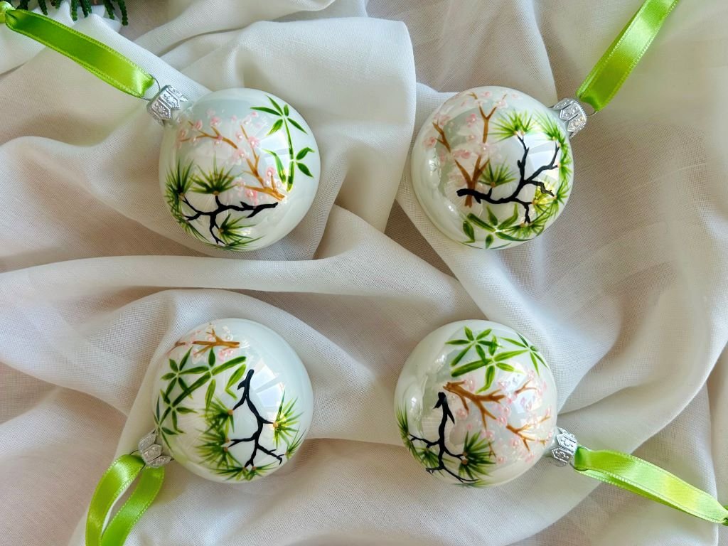 Sada vánočních ozdob s bambusem, borovicí a slivoní nebo-li Třemi přáteli zimy se špičkou