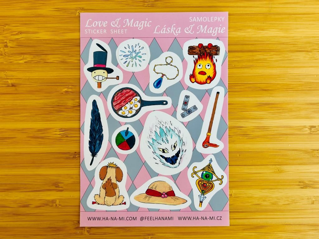 Samolepky s Kalciferem z animovaného japonského filmu Zámek v oblacích