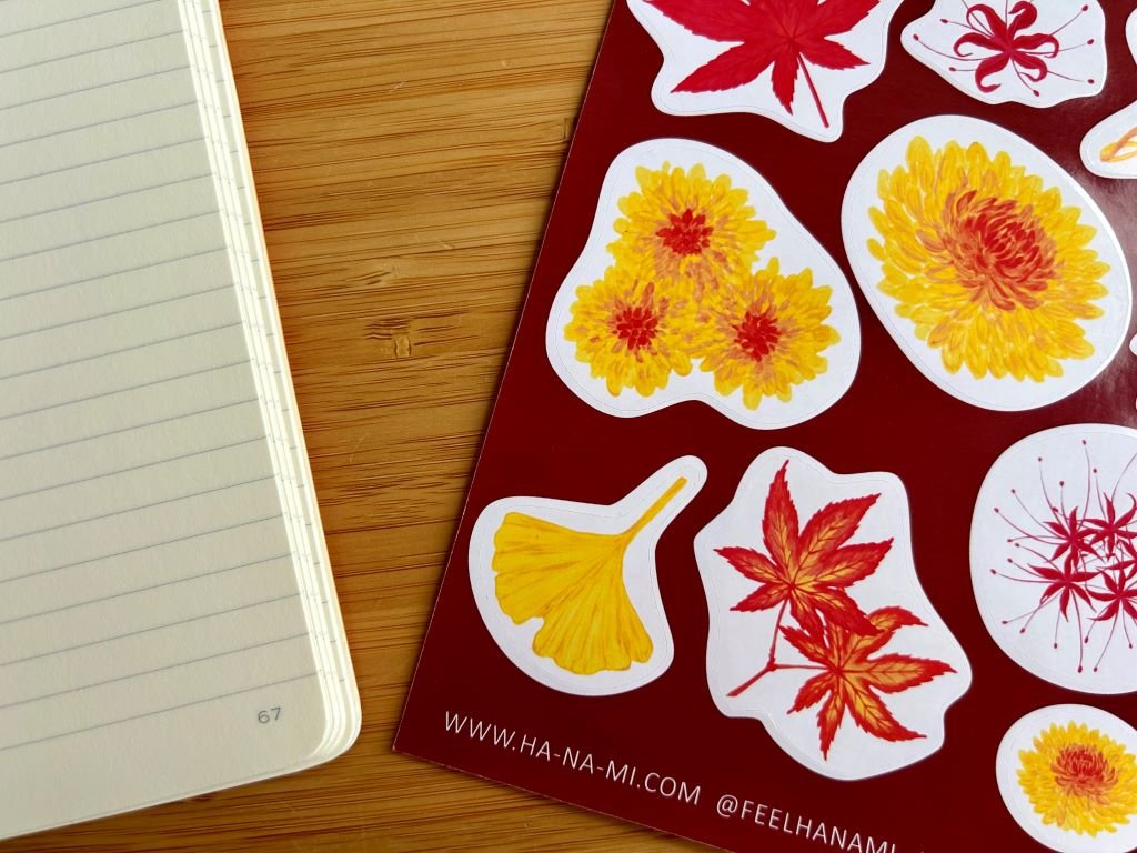 - ozdobte si svůj diář, balíček nebo cokoli jiného chryzantémou, javorovýmh listem, listem stromu ginkgo a pavoučí lilií