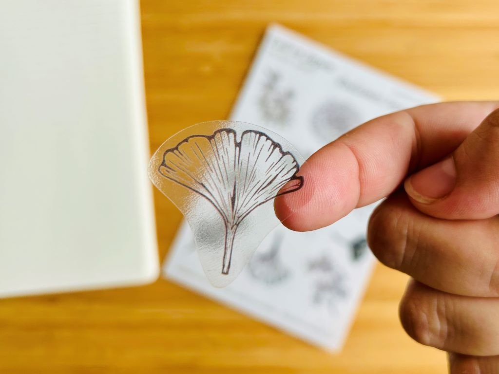 Aršík průhledných vinylových samolepek má velikost menší A5 a je na něm 13 nálepek.