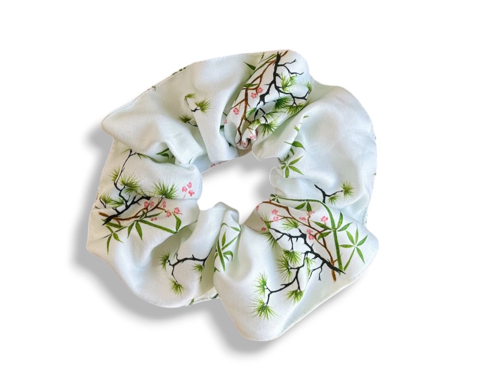 Scrunchies látková gumička s bambusem, borovicí a slivoní nebo-li Třemi přáteli zimy