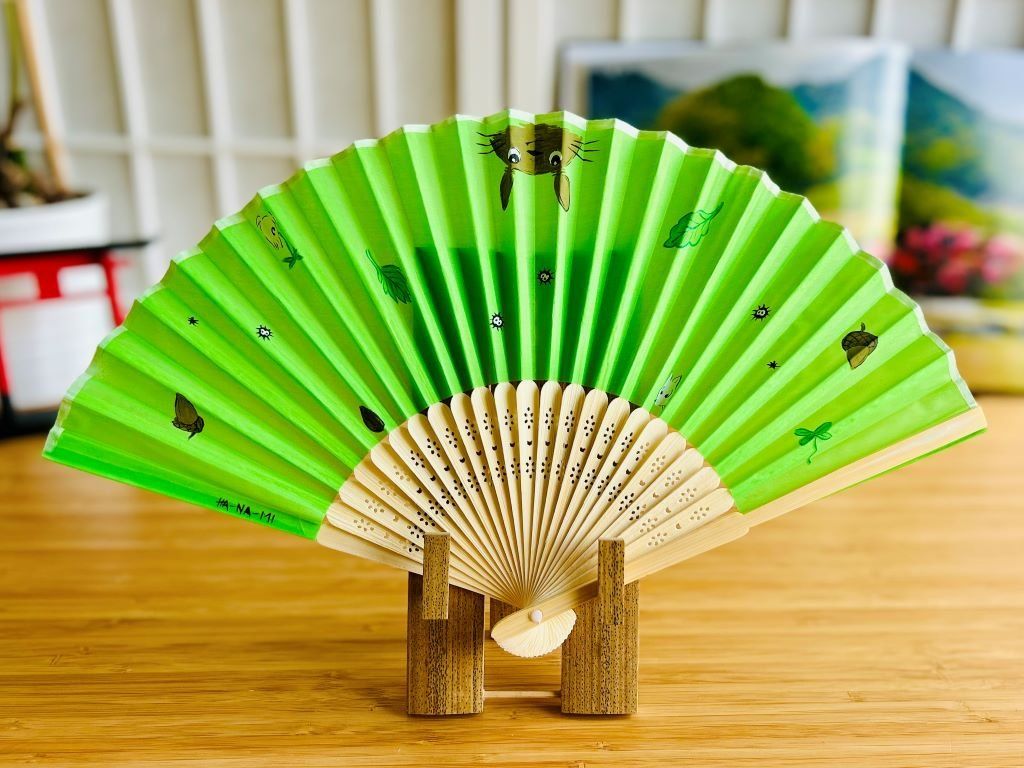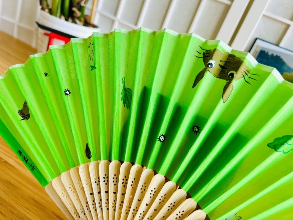 Ručně malovaný skládací "sensu" látkový vějíř "Totoro"